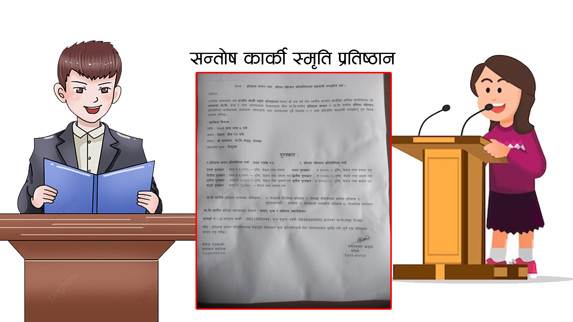 काठमाडौँ – सन्तोष कार्की स्मृति प्रतिष्ठानले इतिहास वाचन तथा प्रतिभा पहिचान कार्यक्रम आयोजना गर्ने भएको छ ।