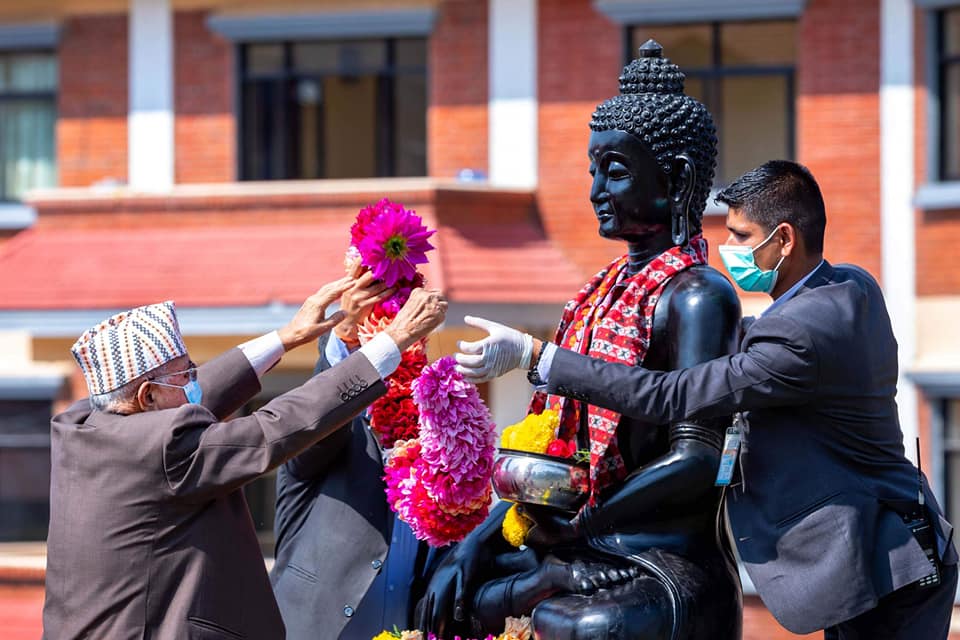 प्रधानमन्त्रीद्वारा बुद्धको प्रतिमामा माल्यार्पण