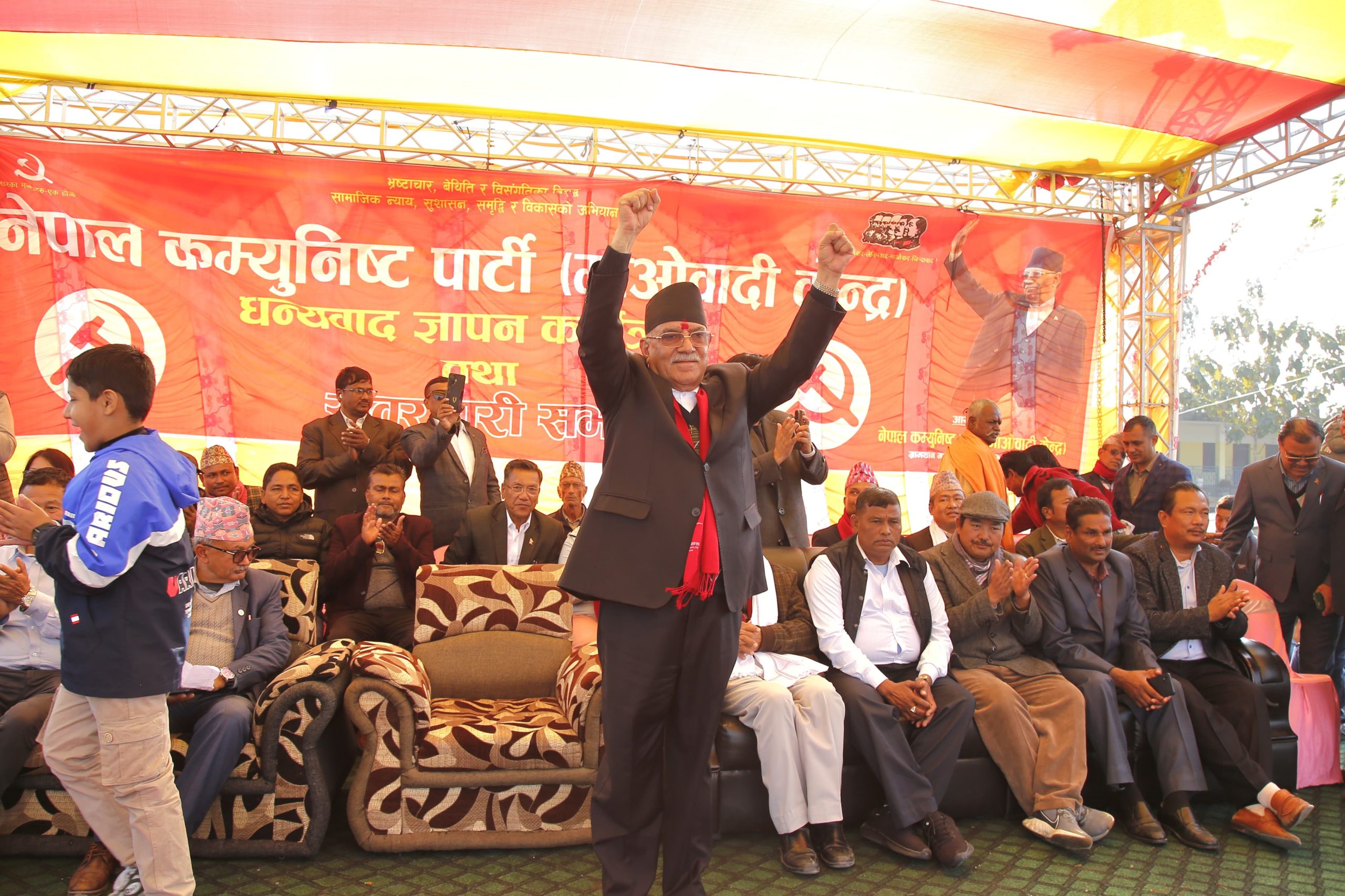 माओवादी केन्द्रले मोरङको ग्रामथान गाउँपालिका–५ तेतेरियामा गरेको धन्यवाद ज्ञापन कार्यक्रम तथा खबरदारी सभालाई सम्बोधन गर्दै उनले यस्तो उद्घोष गरेका हुन । २०७९ को स्थानीय तह निर्वाचनमा तेस्रो बनेको माओवादीलाई यस पटक ग्रामथानवासीले पहिलो बनाएर पालिका अध्यक्षमा जिताउनु रणनैतिक महत्वको विषय भएको उल्लेख गर्दै अध्यक्ष प्रचण्डले भने, ‘हामीले २०७९ को निर्वाचनमा १२२ पालिकामा प्रमुख तथा अध्यक्ष जितेका थियौं, अब ग्रामथान थपिएपछि यो संख्या १२३ पुगेको छ । आगामी स्थानीय तह निर्वाचनमा २५० भन्दा बढी पालिकामा जीत हात पारेर माओवादी पहिलो पार्टी बन्छ, यो हामीलाई उपनिर्वाचनले दिएको महत्वपूर्ण सन्देश हो ।’