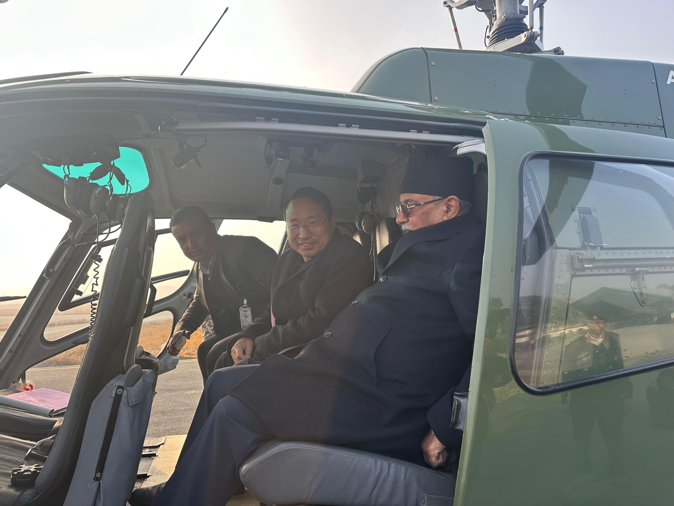 दाहाल नेपाली सेनाको हेलिकप्टर लिएर तेह्रथुम भ्रमणमा गएका हुन्। उनीसँग पार्टीका नेता वर्षमान पुन रहेका छन्।