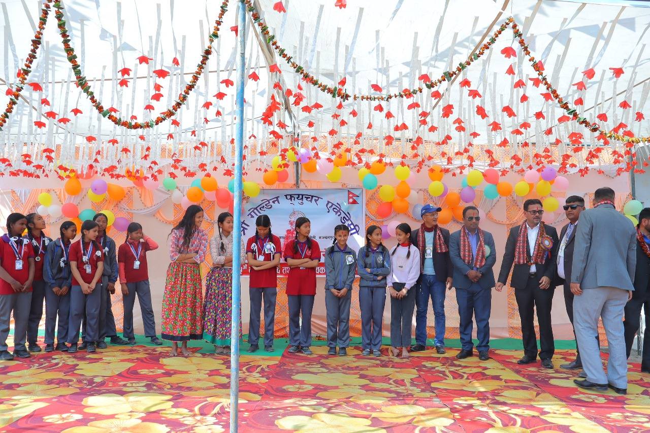 झलारी, कञ्चनपुर – गोल्डनफ्यूचर एकेडेमी, शुक्लाफाँटा नगरपालिका–८ स्थित एक प्रतिष्ठित शैक्षिक संस्थानले बुधवार, १५औं वार्षिकोत्सव र अभिभावक दिवसको कार्यक्रम सम्पन्न गर्यो। यस अवसरमा विद्यालयका विद्यार्थीहरूले सांस्कृतिक नृत्य र विभिन्न खेलकुद गतिविधिहरू प्रस्तुत गर्दै वार्षिकोत्सवलाई विशेष बनाएका थिए।