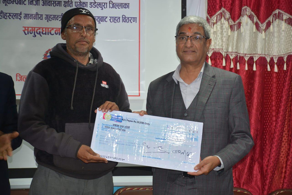 डडेल्धुरा – गृहमन्त्री रमेश लेखकले डेढ बर्षअघि डोटी भूकम्प प्रभावित लाभग्राहीलाई अनुदान रकम हस्तान्तरण थालनी गरेका छन् ।