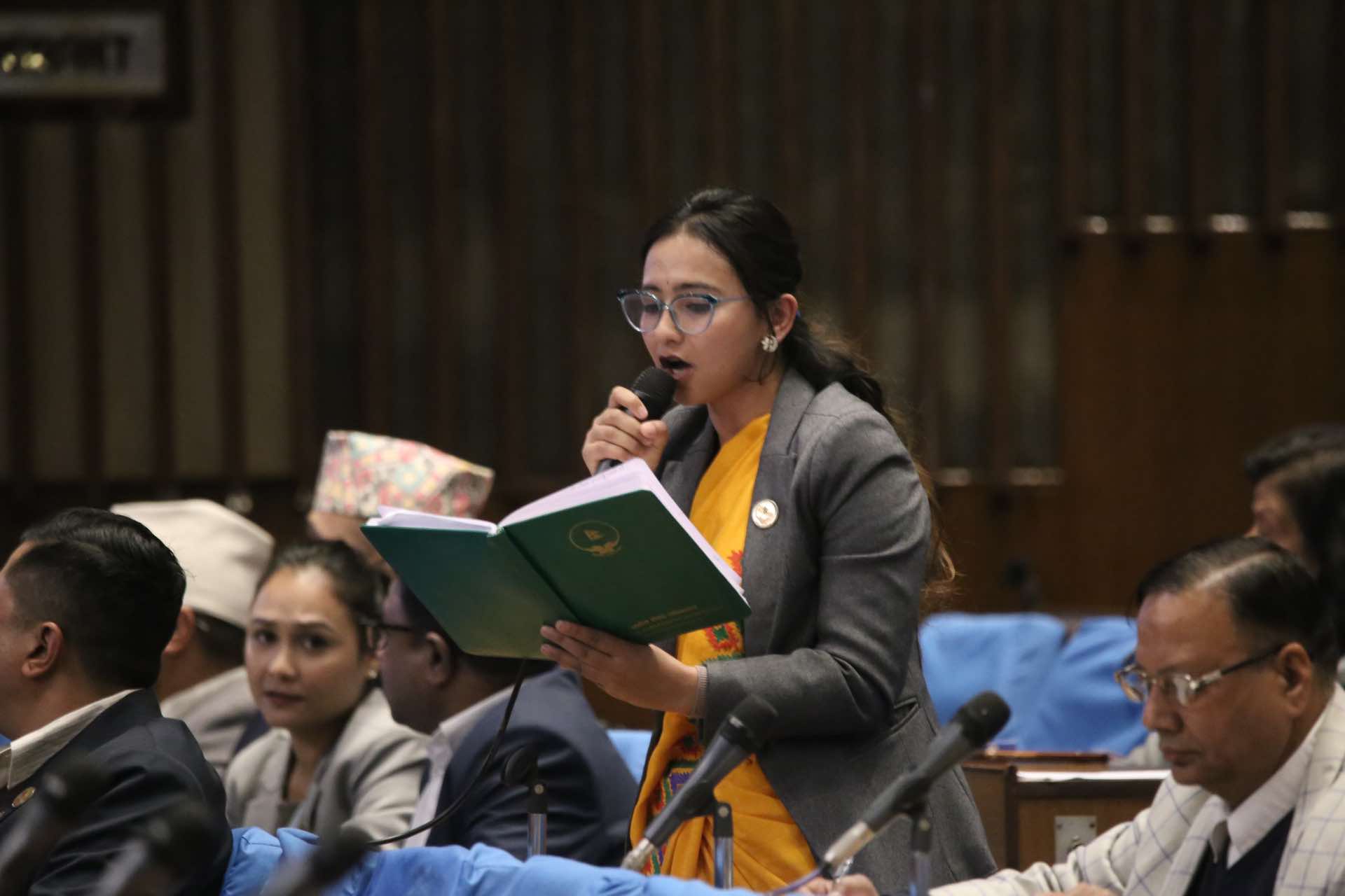 उनले भनेकी छन्- ‘संविधानमा लैङ्गिक समानताको धारा त राख्यौँ तर राज्यले महिलामाथि हेर्ने दृष्टिकोण परिवर्तन हुन सकेन । स्वास्थ्य मन्त्रालयको सचिवका लागि सिफारिस र वरिष्ठताका आधारमा एक नम्बरमा रहेकी डा. संगीता मिश्रलाई पन्छाएर अर्कैलाई सचिव नियुक्ति गरियो । यस्तो किन गरियो ? पुरुष मन्त्रीले महिला सचिवसँग कामै गर्न नसक्ने हो ? कि महिला नेतृतव स्वीकार नगरिएको हो ? सरकारसँग संसदले जवाफ माग्नुपर्छ ।’