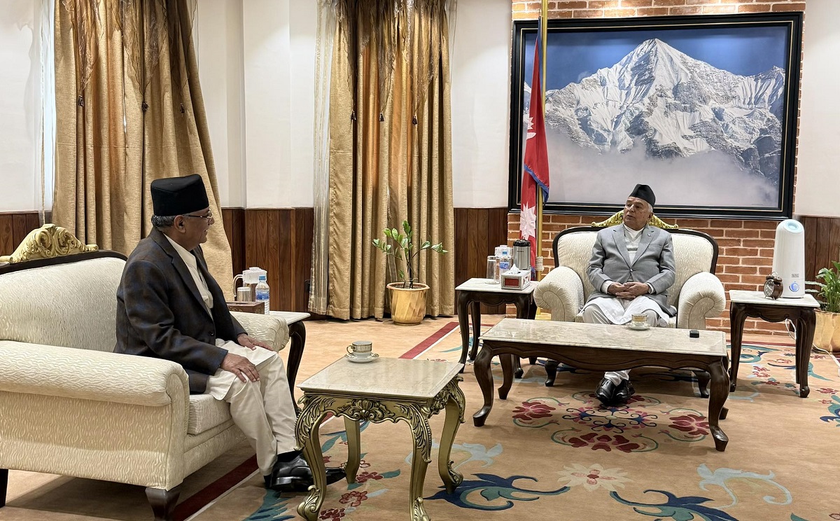 राष्ट्रपति रामचन्द्र पौडेललाई भेट्न सोमबार अपराह्न अध्यक्ष प्रचण्ड शीतल निवास पुगेका हुन्। अध्यक्ष प्रचण्डले समसामयिक विषयमा राष्ट्रपतिसँग कुराकानी गरेको अध्यक्ष दाहालको सचिवालयले जनाएको छ। बालुवाटारमा आइतबार अपराह्न प्रधानमन्त्री केपी शर्मा ओली, नेपाली कांग्रेसका सभापति शेरबहादुर देउवा र माओवादी केन्द्रका अध्यक्ष दाहालबीच संक्रमणकालीन न्यायलगायत विषयमा कुराकानी गर्न भेटवार्ता हुँदैछ।