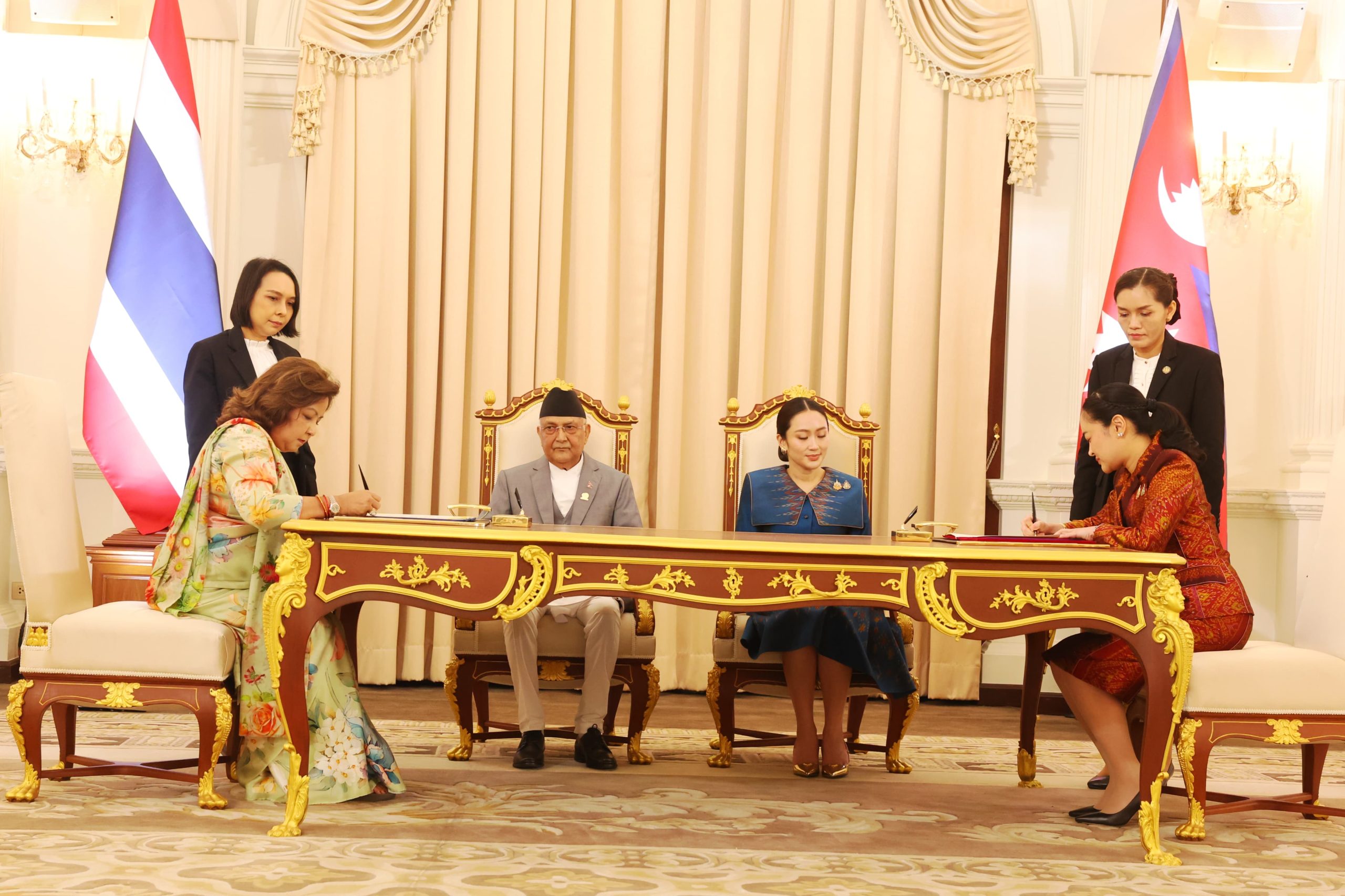 काठमाडौं, २० चैत । नेपाल र थाइल्याण्ड बिचमा बिभिन्न समझदारी भएका छन् । नेपालको तर्फबाट परराष्ट्रमन्त्री डा आरजु राणा देउवाले र थाइल्याण्डका तर्फबाट संस्कृतिसम्बन्धी समझदारीपत्रमा संस्कृतिमन्त्री सुदावान वाङसु फाकिजकोसोलले सम्झौता पत्रमा हस्ताक्षर गरेका हुन भने पर्यटन सहयोगसम्बन्धी सम्झौतापत्रमा पर्यटन तथा खेलकुदमन्त्री सोरावाङ तिनथोङले हस्ताक्षर गरेका छन ।