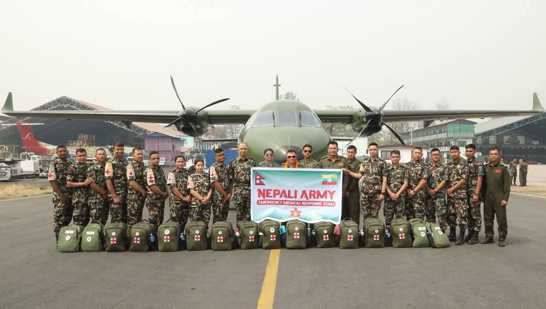 म्यानमारमा गएको भूकम्पपछि नेपाल सरकारले त्यहाँ मेडिकल सहायतासहित नेपाली सेनाको २२ सदस्यीय टोली पठाएको हो ।