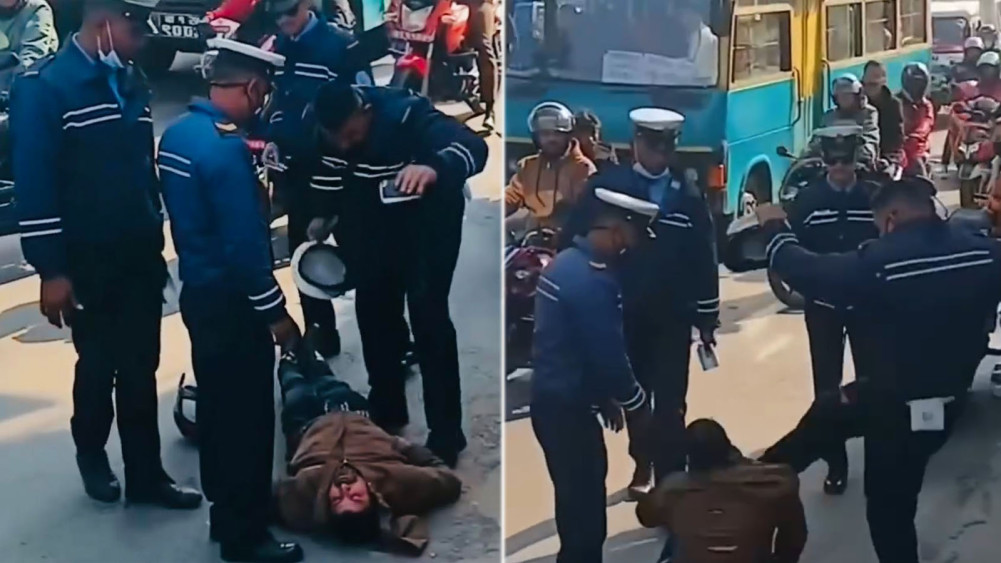भिडियोमा देखिन्छ कि एक व्यक्तिलाई लडाएर कुटपिट गरिएको छ। यसमा एक ट्राफिक प्रहरीले बुटले ती व्यक्तिलाई कुटपिट गरिरहेको देखिन्छ भने अन्य एक प्रहरीले कागजपत्र भूइँमा फ्यालेर हिँडिरहेका छन्। प्रहरीले भने कि ती व्यक्तिले मोटरसाइकलमा सामान बोकेर यात्रा गरेका थिए।