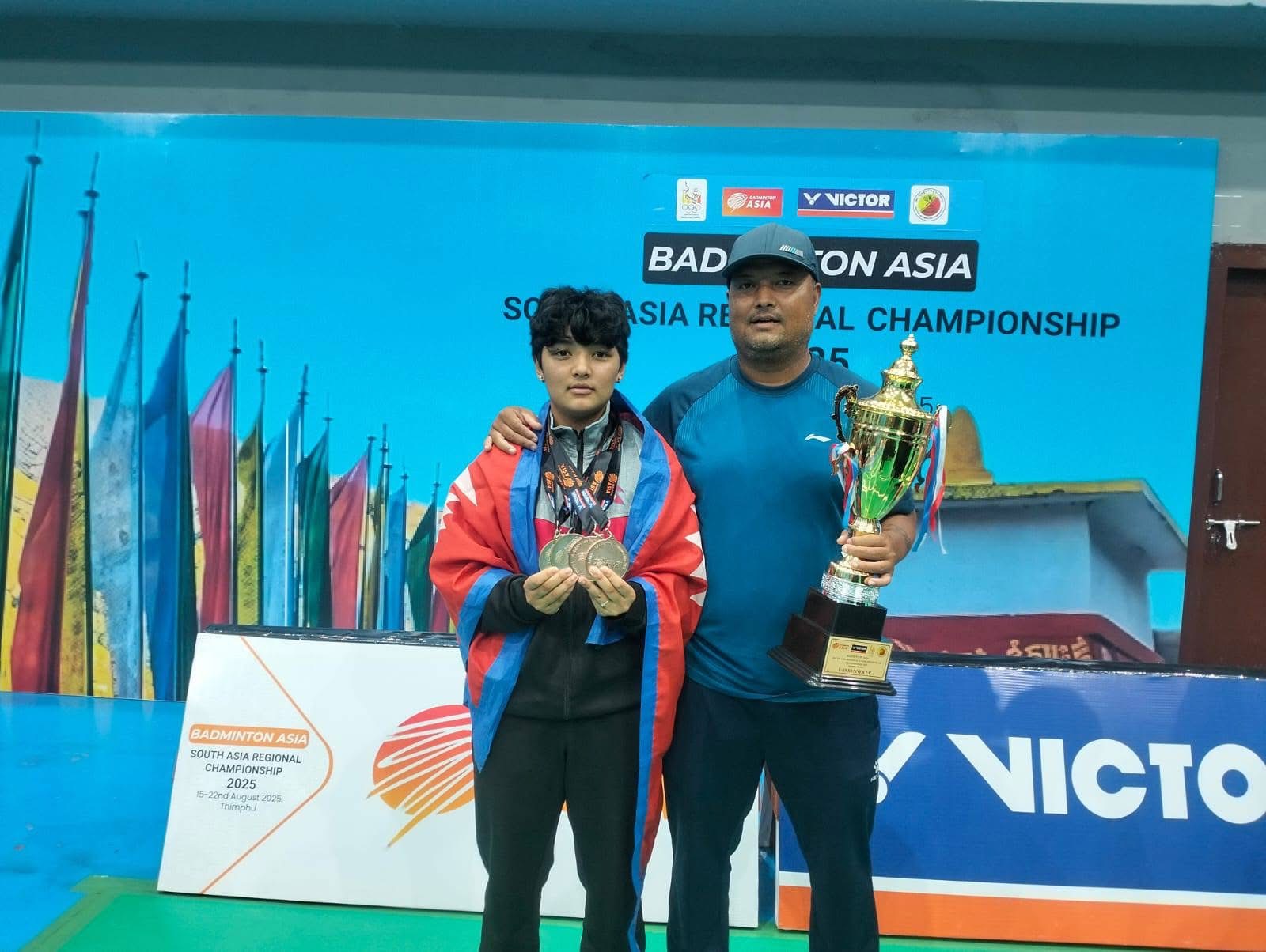 काठमाडौं । काठमाडौंको पेप्सीकोलामा रहेको नेक्सस इन्टरनेशनल एकेडेमीकी विद्यार्थीनी स्वोर्लिन श्रेष्ठले भुटानको थिम्पुमा सम्पन्न बैडमिन्टन एशिया (दक्षिण एशिया) क्षेत्रीय च्याम्पियनसिप–२०२५ मा ऐतिहासिक सफलता हात पारेकी छन् ।