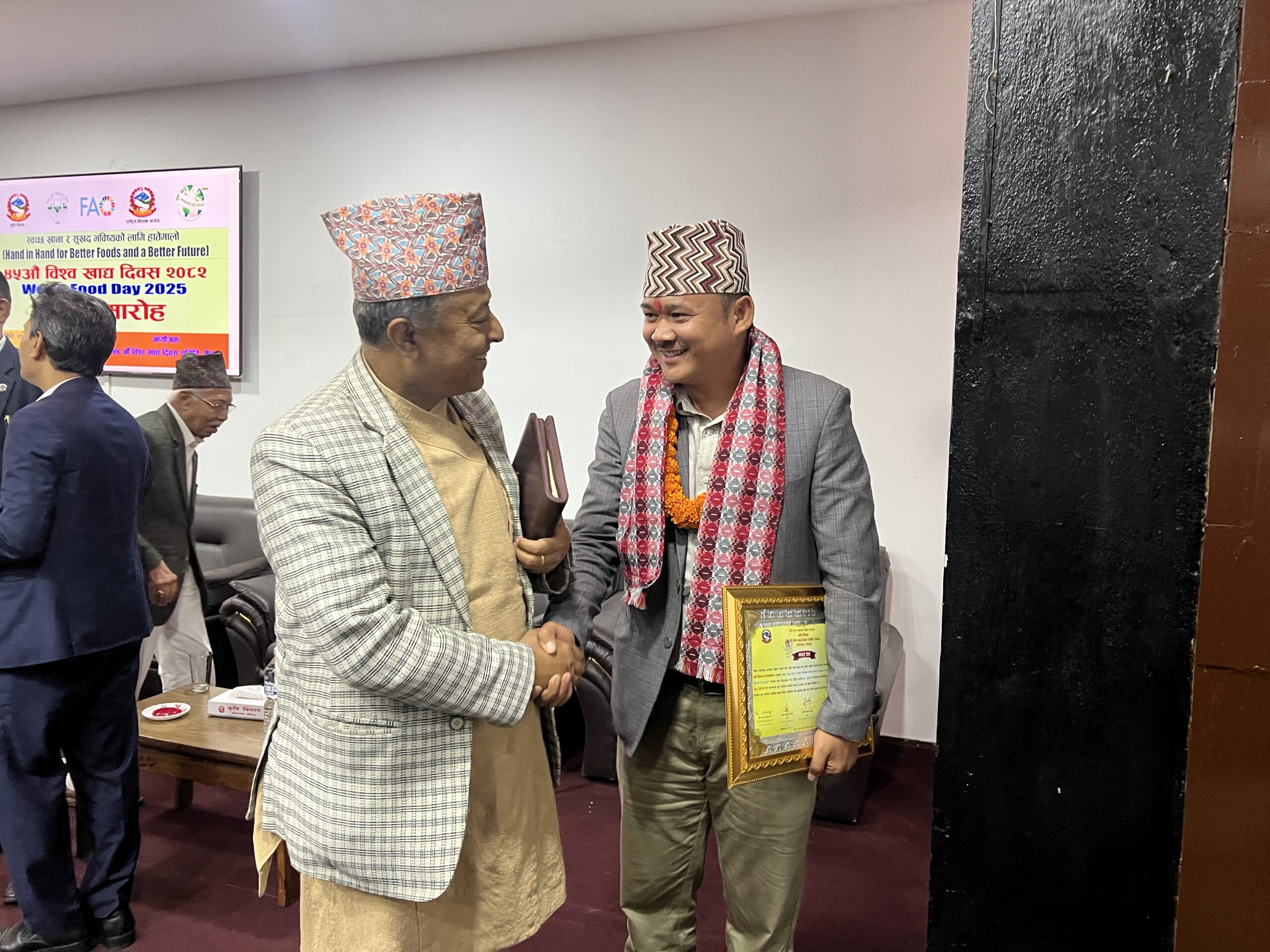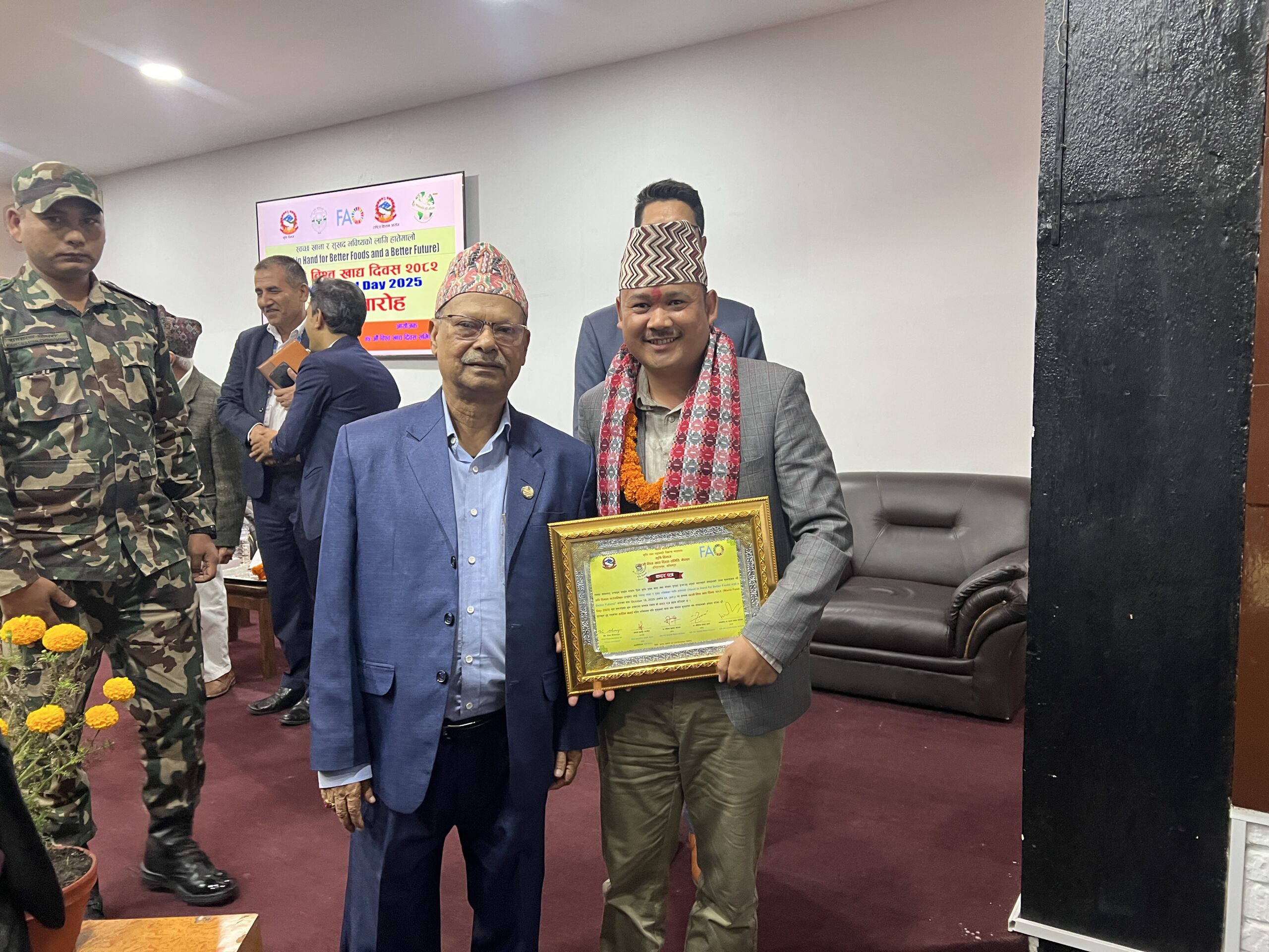 सम्मान कार्यक्रममा कृषि तथा पशुपन्छी विकास मन्त्री डा. मदन परियार, सचिवद्वय डा. गोविन्द प्रसाद शर्मा र डा. दीपक कुमार खराल, कृषि विभागका महानिर्देशक प्रकाश सन्जेल, साथै मन्त्रालयका सहसचिव, उपसचिव तथा कृषि विज्ञहरूको उपस्थिति रहेको थियो।