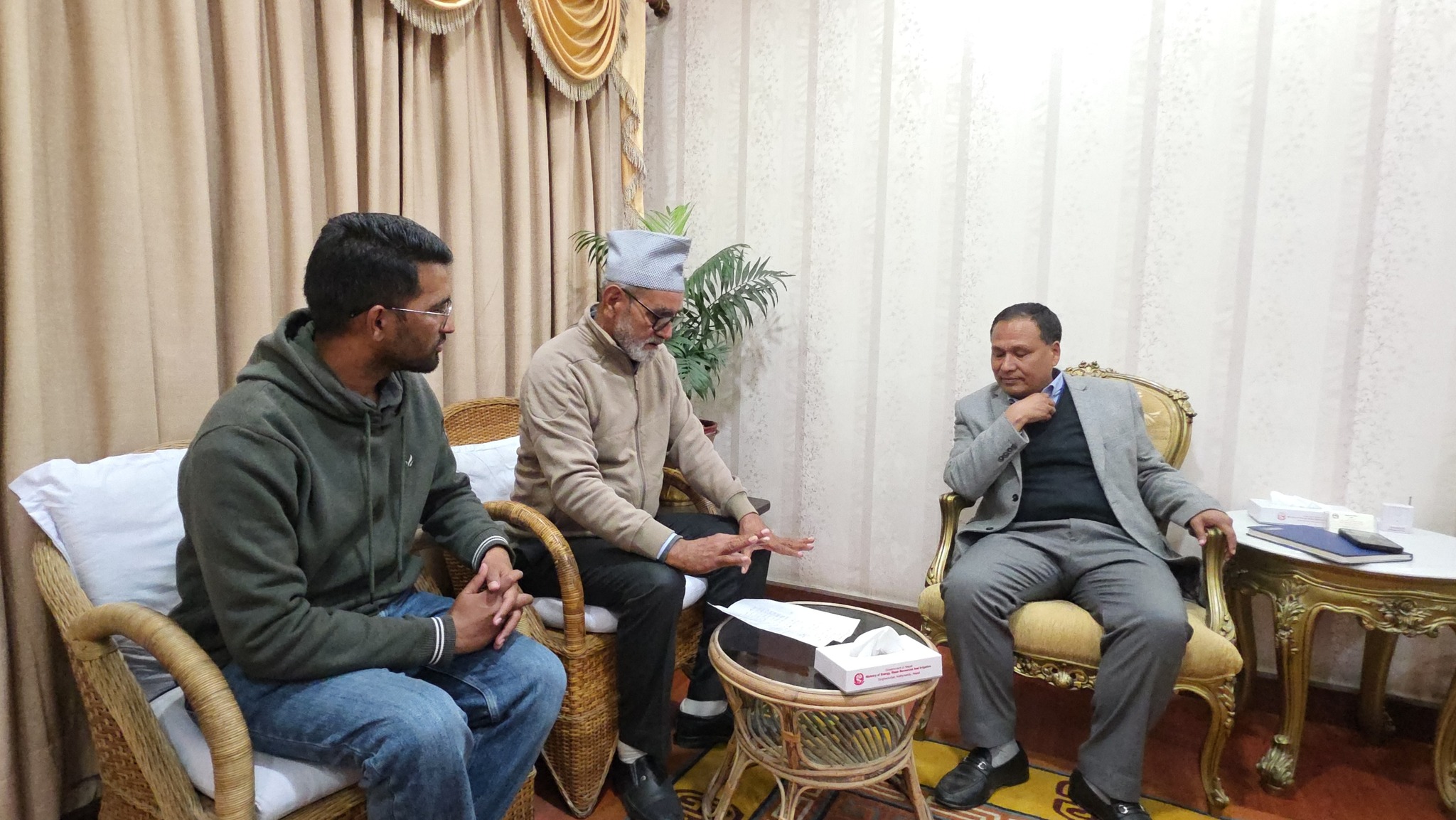 काठमाडौँ — दार्चुलाका पूर्वाधार तथा विकासका महत्त्वपूर्ण मुद्दाहरू उठाउँदै लेकम गाउँपालिका अध्यक्ष राम दत्त जोशीको नेतृत्वमा दार्चुलावासीले ऊर्जा, जलस्रोत तथा सिँचाइमन्त्री कुलमान घिसिङलाई ध्यानाकर्षण गराएका छन्। ध्यानाकर्षण पत्रमार्फत अध्यक्ष जोशीले दार्चुलाको समग्र पूर्वाधार, यातायात, ऊर्जा र सीमापार संरचना सम्बन्धी अनेकौँ गम्भीर चुनौतीहरू तत्काल समाधानका लागि सरकारको पहल आवश्यक रहेको उल्लेख गरेका छन्। मन्त्री घिसिङ भेट्न युवा नेता नरबहादुर विष्ट समेत दार्चुलाको प्रतिनिधित्व गर्दै उपस्थित हुनुभएको थियो । अधिवक्ता समेत रहेका नेता बिष्ट दार्चुलाको विकासका लागि चिन्तन गर्ने युवा नेताको रुपमा चिनिन्छन् ।