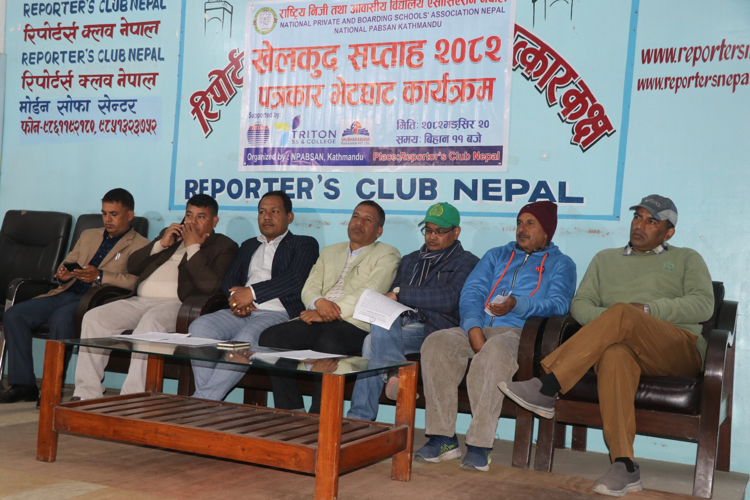 काठमाडौँ — राष्ट्रिय निजी तथा आवासीय विद्यालय एसोसिएसन नेपाल (नेशनल प्याब्सन) काठमाडौँ जिल्ला समितिले खेलकुद सप्ताह–२०८२ आयोजना गर्ने भएको छ । शनिवार रिपोटर्स क्लबमा पत्रकार सम्मेलनको आयोजना गरी नेशनल प्याब्सन काठमाडौंका उपाध्यक्ष तथा जिल्ला अतिरिक्त क्रियाकलाप संयोजक प्रेम कुमार भुजेलले खेलकुद सप्ताहका उद्देश्य, तयारी र सञ्चालन योजनाबारे विस्तृत जानकारी प्रदान गर्नुभयो ।