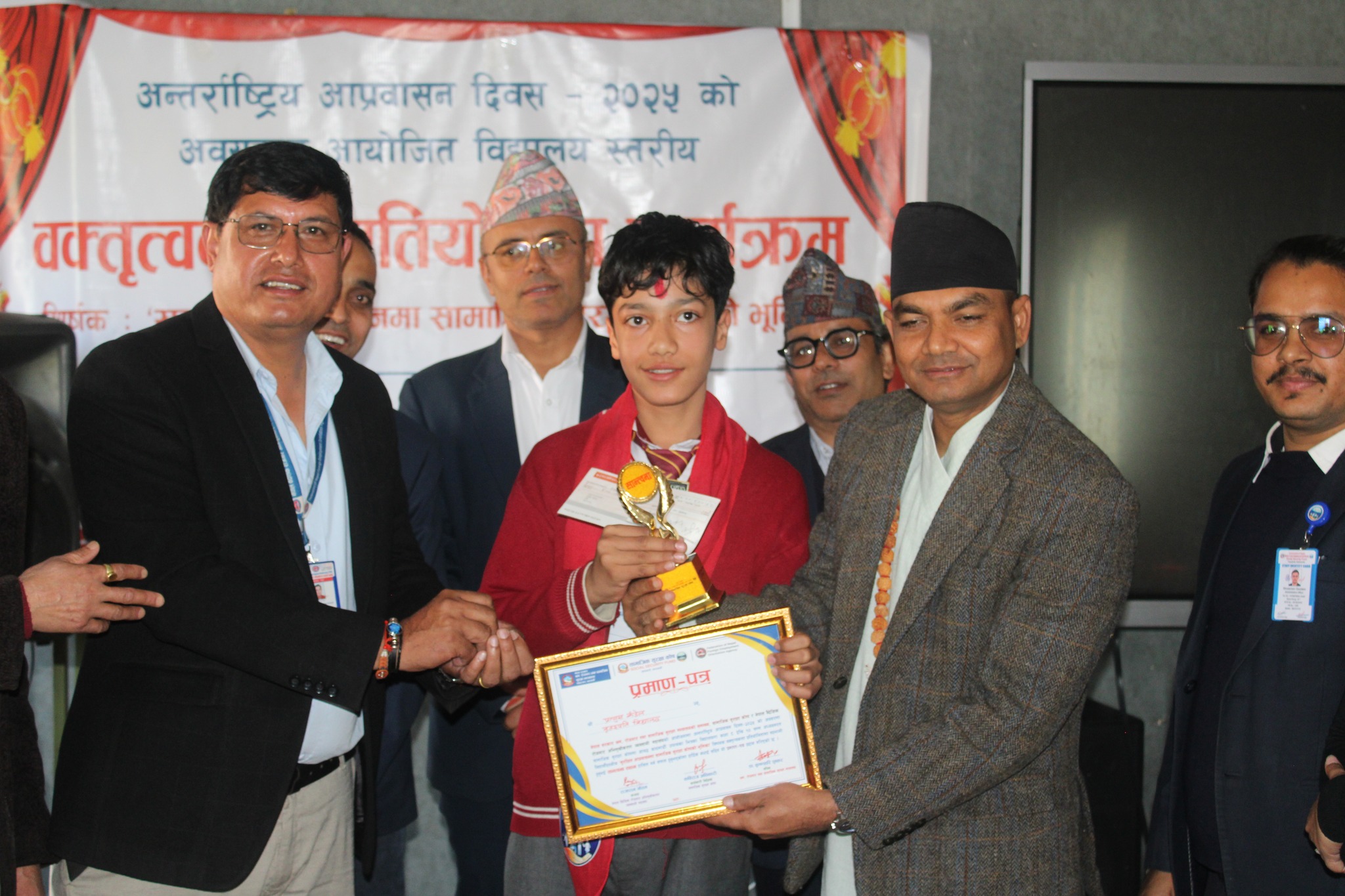 काठमाडौं – अन्तर्राष्ट्रिय आप्रवासन दिवस २०२५ को अवसरमा “सुरक्षित आप्रवासनमा सामाजिक सुरक्षा कोषको भूमिका” शीर्षकमा आयोजित विद्यालयस्तरीय वक्तृत्व कला प्रतियोगिता काठमाडौँको पेप्सीकोला टाउनप्पानिङमा रहेको नेक्सस इन्टरनेसनल एकेडेमीको प्राङ्गणमा भव्य रूपमा सम्पन्न भएको छ।
