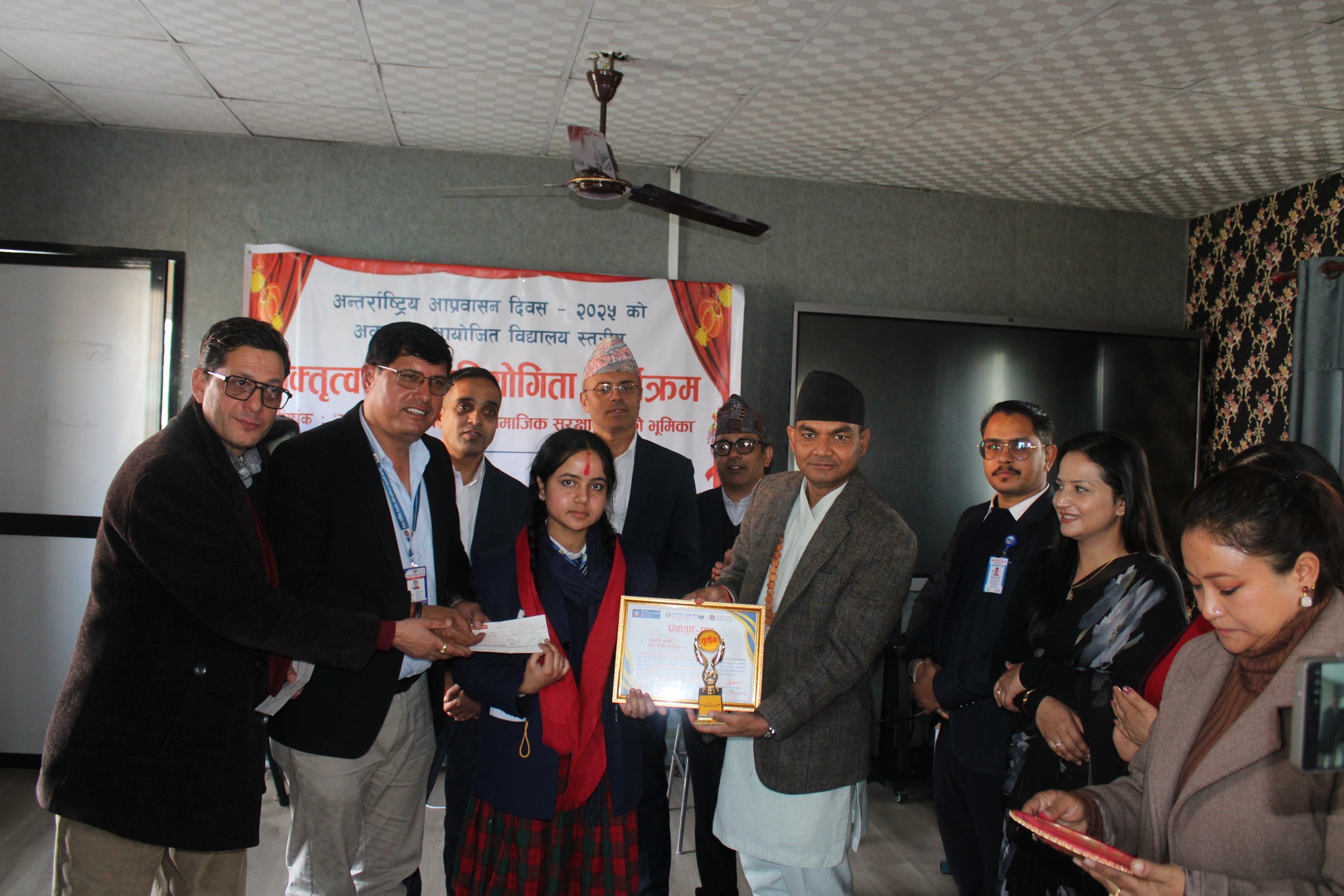 काठमाडौं – अन्तर्राष्ट्रिय आप्रवासन दिवस २०२५ को अवसरमा “सुरक्षित आप्रवासनमा सामाजिक सुरक्षा कोषको भूमिका” शीर्षकमा आयोजित विद्यालयस्तरीय वक्तृत्व कला प्रतियोगिता काठमाडौँको पेप्सीकोला टाउनप्पानिङमा रहेको नेक्सस इन्टरनेसनल एकेडेमीको प्राङ्गणमा भव्य रूपमा सम्पन्न भएको छ।
