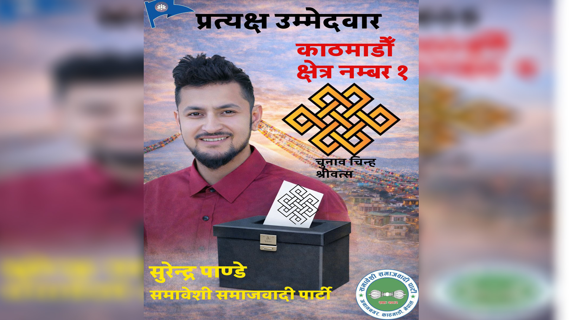 पाण्डे समावेशी समाजवादी पार्टीका तर्फबाट उम्मेदवार बनेका हुन् र उनले श्रीवत्स चुनाव चिन्हमा मतदान गर्न आम मतदातासमक्ष आग्रह गरेका छन्।