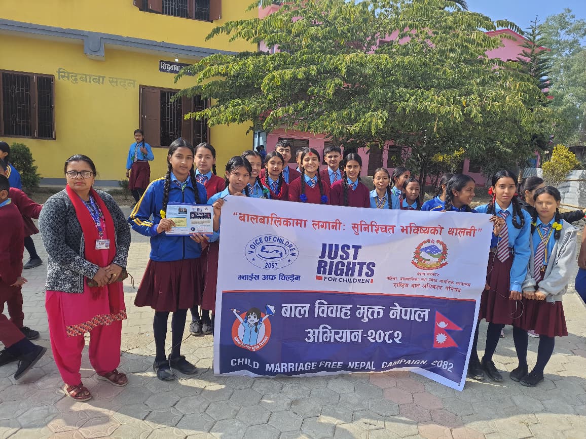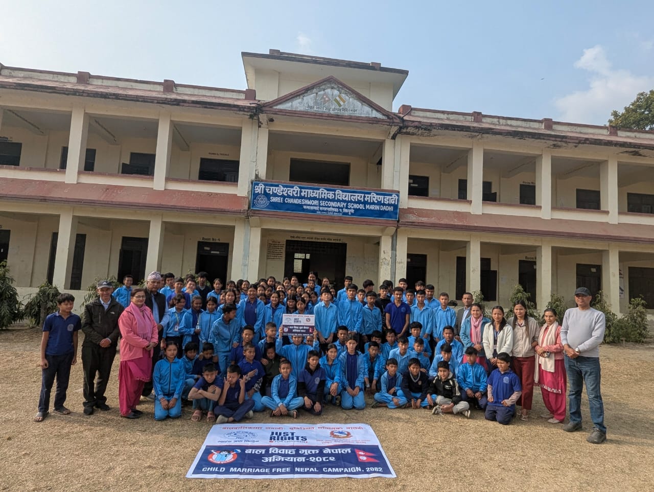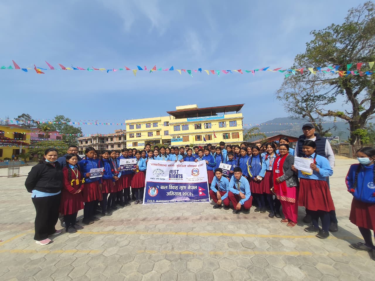 यसैबीच वडा नं. १ स्थित श्री चण्डेश्वरी मा.वि., वडा नं. ४ का पञ्चकन्या र बरुणदेवी मा.वि., वडा नं. ५ का जनज्योति मा.वि. तथा वडा नं. ७ का श्री मा.वि. गडौलीमा जनचेतनामूलक कार्यक्रम सञ्चालन गरिएको छ। ती कार्यक्रममार्फत करिब २ हजार विद्यार्थीलाई बालविवाहका कारण, असर तथा कानुनी प्रावधानबारे जानकारी गराइएको छ।