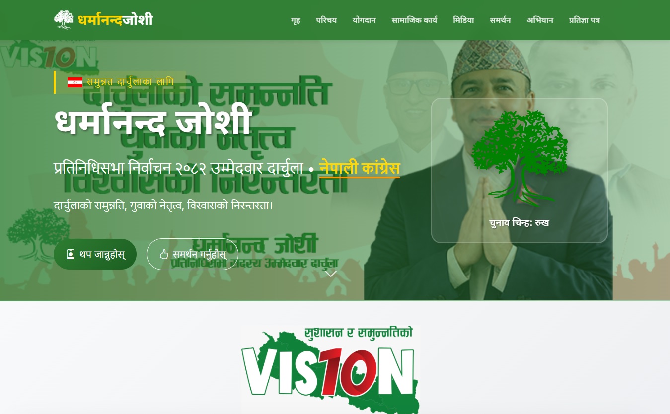 यसरी व्यक्तिगत प्रोफाइल, सामाजिक योगदान र भावी योजनासहित धर्मानन्द जोशीको आधिकारिक वेबसाइट सञ्चालनमा आएको छ, जसले उनको राजनीतिक तथा सामाजिक यात्रालाई व्यवस्थित रूपमा प्रस्तुत गरेको छ।