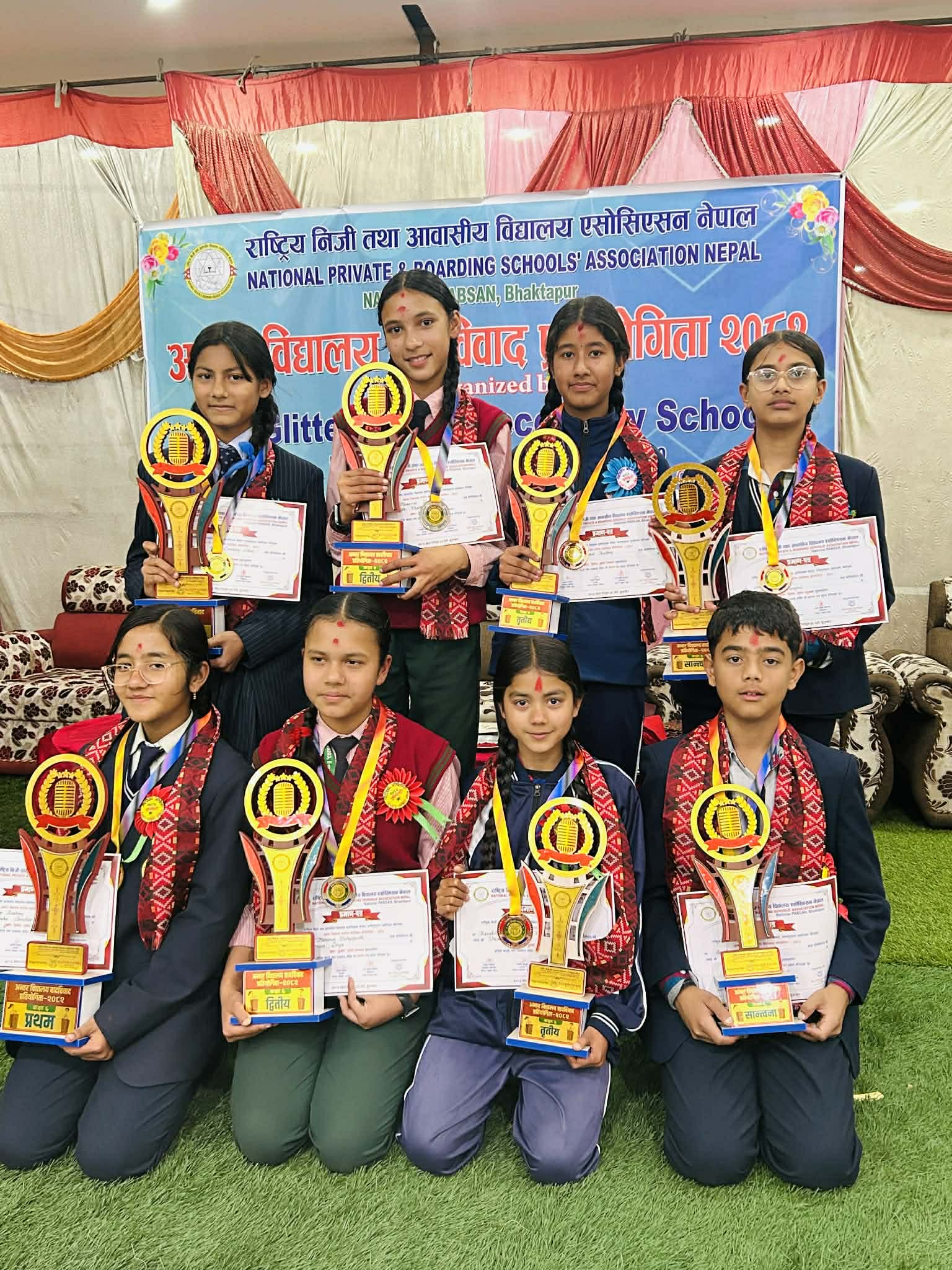 भक्तपुर– नेसनल प्याव्सन भक्तपुरको कार्यक्रम ग्लीटर फ्युचर स्कुलको आयोजनमा यहि फागुन २९ गते शुक्रबार अन्तर-विद्यालय वादविवाद प्रतियोगिता २०८२ भव्यताका साथ सम्पन्न भएको छ ! प्रतियोगिता दुई श्रेणी कक्षा ६ र ७ गरी सञ्चालन गरिएको थियो । कक्षा ६ र ७ का विद्यार्थीहरु जसले आफ्नो प्रतिभा, आत्मविश्वास, ज्ञान र क्षमतालाई वाककलाको माध्यमबाट प्रस्तुत गरेका थिए ।