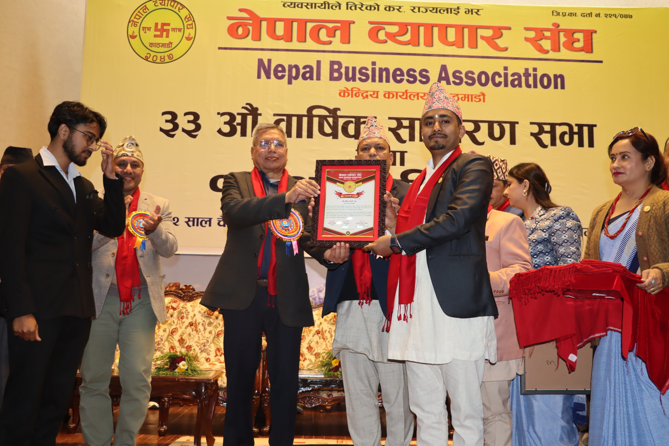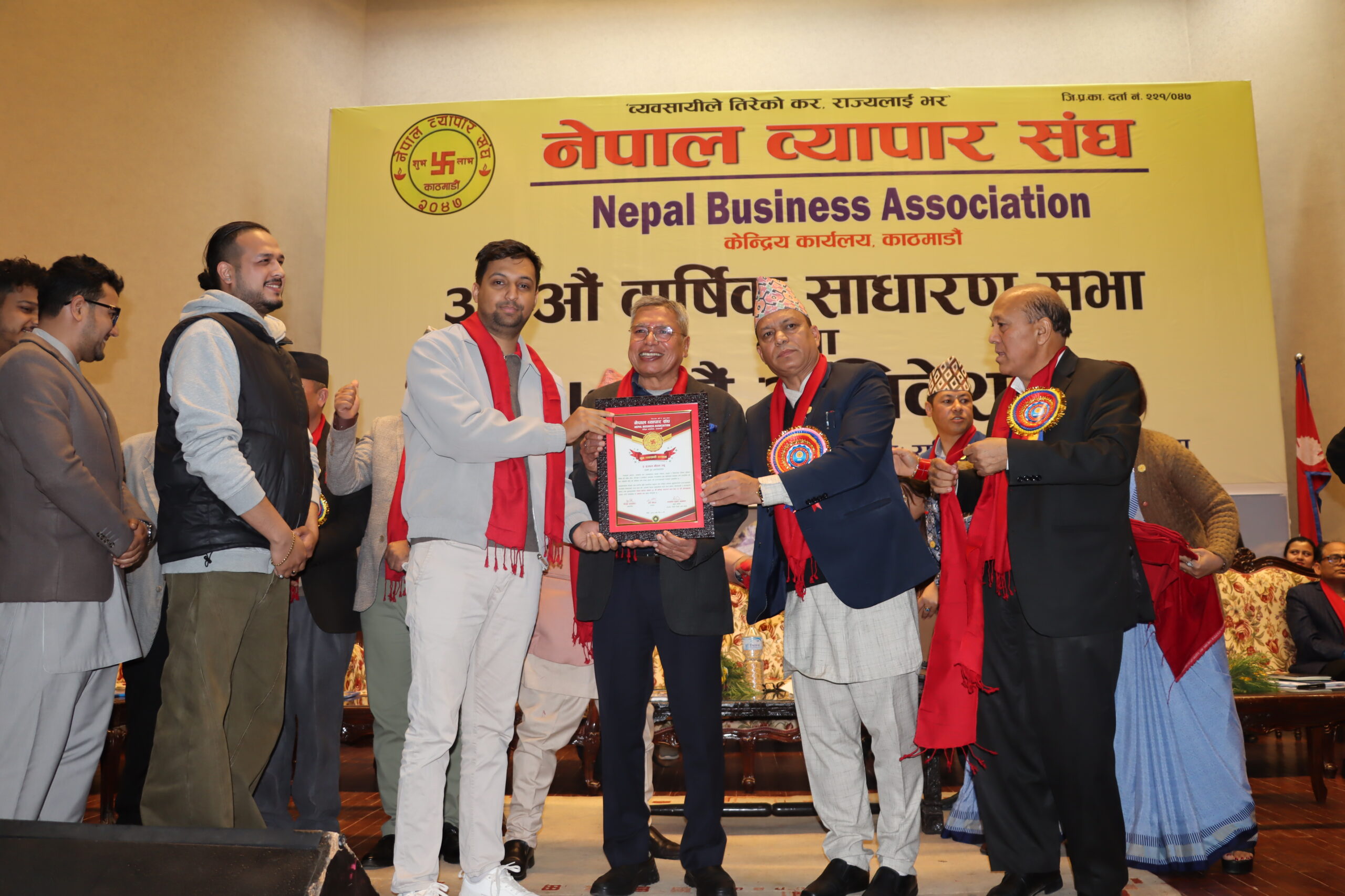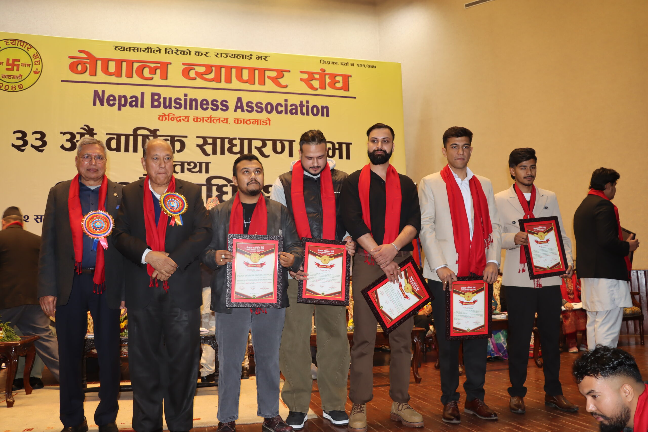काठमाडौँ – नेपाल व्यापार क्षेत्रमा पहिलोपटक जेनजी पुस्ताका युवा व्यवसायीहरूलाई एकै मञ्चबाट सम्मान गरिएको छ। नेपाल व्यापार संघद्वारा आयोजित नेपाल व्यापार संघको ३३औँ वार्षिक साधारण सभा तथा १७औँ अधिवेशनको अवसरपारि विभिन्न क्षेत्रमा सक्रिय, सिर्जनशील र उद्यमशीलता मार्फत पहिचान बनाएका युवा व्यवसायीहरूलाई सम्मान गरिएको हो। नयाँ सोच, नवप्रवर्तन र आत्मनिर्भर व्यवसायिक यात्रालाई प्रवर्द्धन गर्ने उद्देश्यले गरिएको यो सम्मान कार्यक्रमलाई नेपालकै व्यापारिक इतिहासमा महत्वपूर्ण पहलका रूपमा हेरिएको छ।