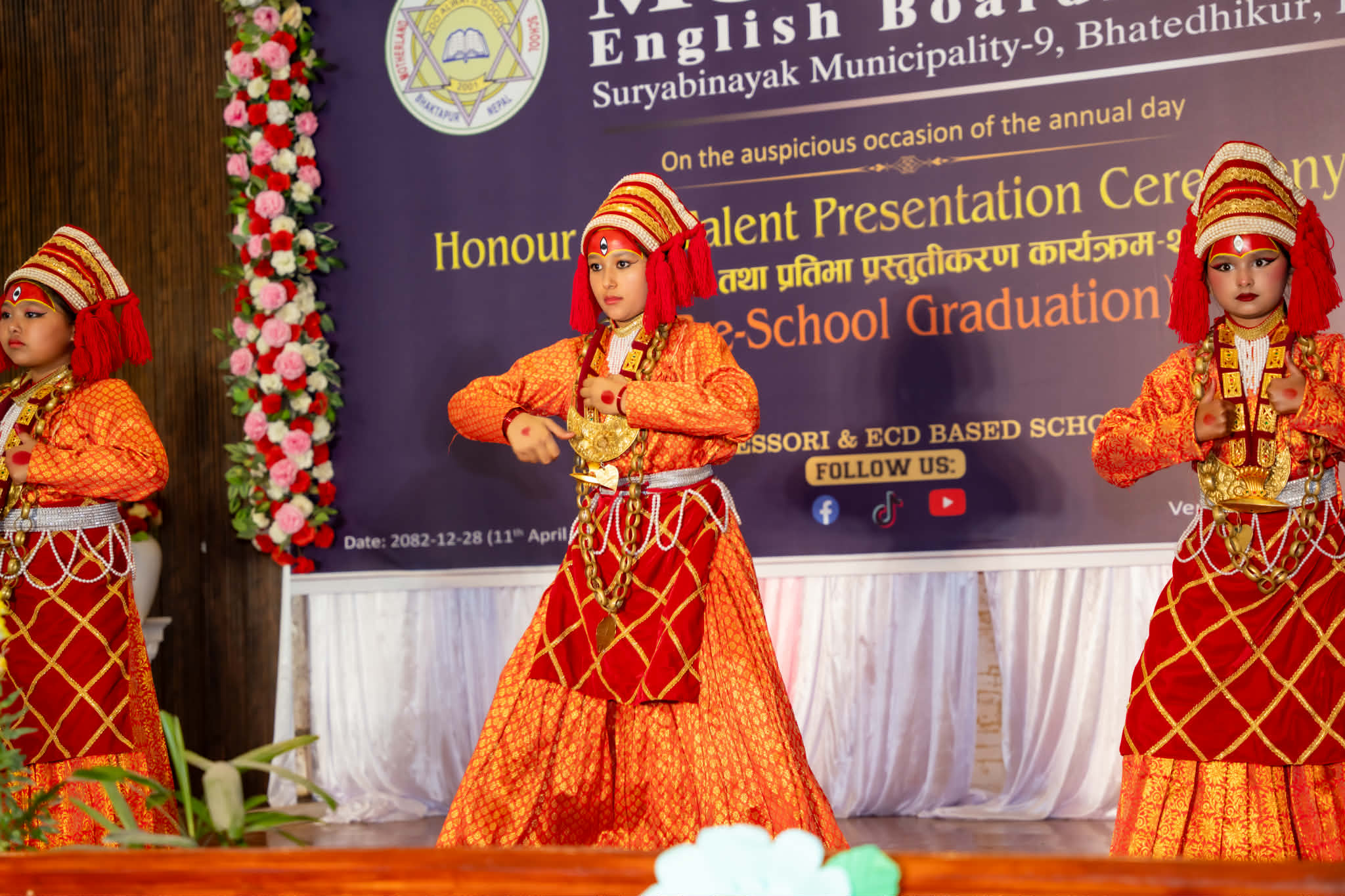 विद्यालय व्यवस्थापन समितिका अध्यक्ष रामकृष्ण खड्काको सभापतित्वमा सम्पन्न कार्यक्रममा विद्यार्थीहरुद्वारा नेपाली मौलिक संस्कृति झल्कने आकर्षक नृत्यहरु, विविध प्रतिभा प्रस्तुति, गीत तथा नाटक प्रस्तुत गरिएको थियो । विद्यालयकी संचालिका एक्ज्यूकेटिभ हेड शर्मिला देउजाको कार्यक्रम निर्देशन एवं कार्यक्रम संचालन शिक्षक शृष्टि कासुलाले गर्नु भएको थियो ।
