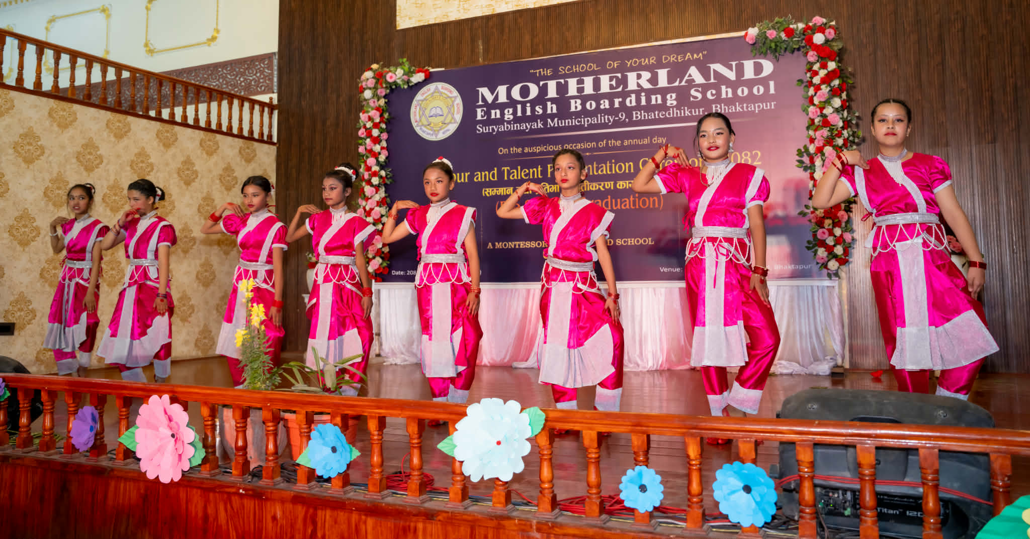 पूर्वप्राथमिक तह यूकेजी का विद्यार्थीहरुलाई दिक्षित गरिएको कार्यक्रममा ईसिडी एक्सप्रोर्ट एवं मदरल्याण्ड स्कुलकी प्रि स्कुल को-अर्डिनेटर सुमित्रा राणामगरले मदरल्याण्ड स्कुलमा पूर्ण रुपमा ईसिडी तथा मन्टेश्वरी आधारमा शिक्षण गरिएको बताउनु भएको थियो । स्कुलकी एकेडेमिक को अर्डिनेटर धारणा स्यान्दिल्य(काफ्ले) ले शैक्षिक सत्र २०८३ मा गरिने आन्तरिक मूल्याकंन सम्बन्धि जानकारी दिनु भएको थियो ।