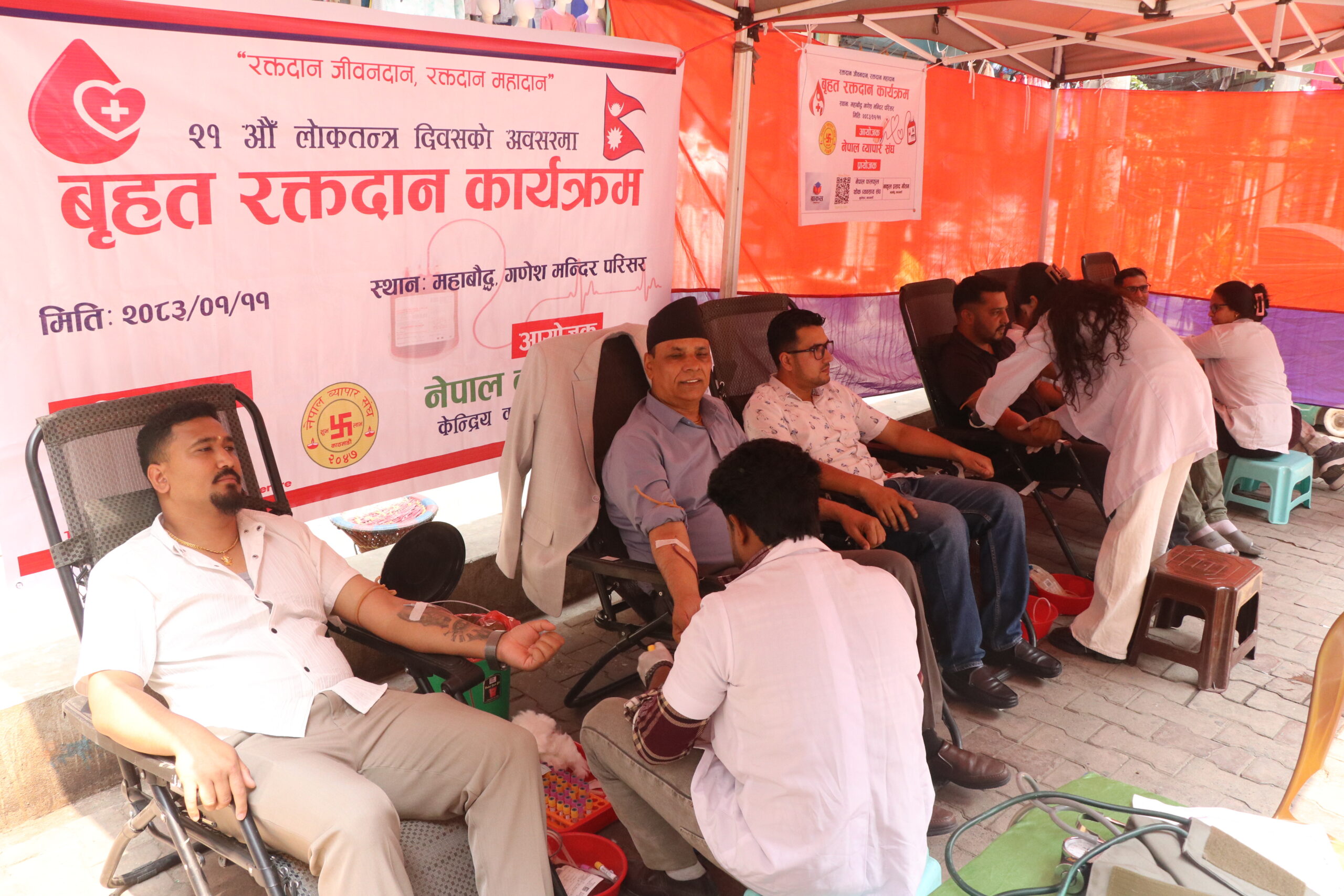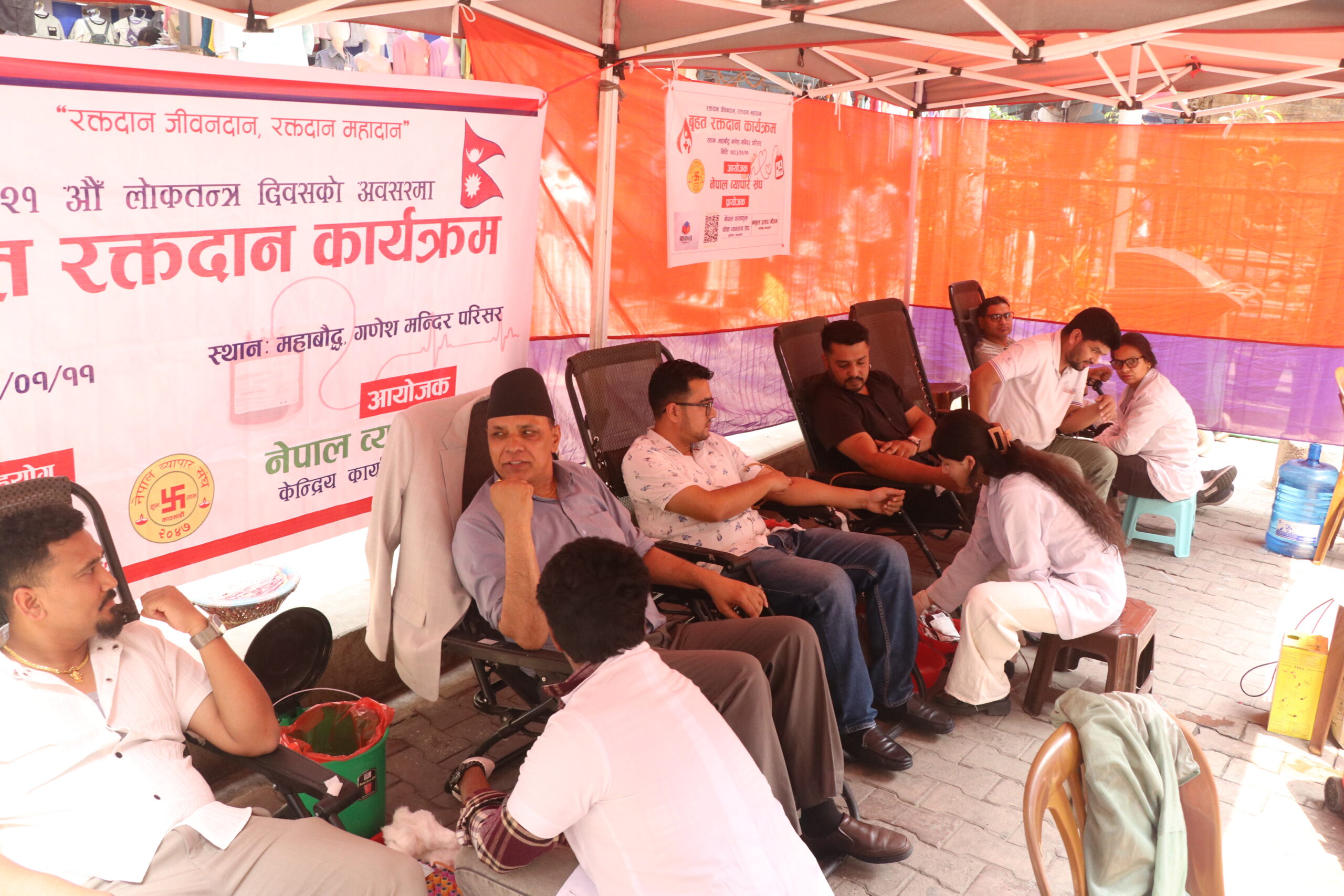 काठमाडौँ – “रक्तदान जीवनदान, रक्तदान महादान” भन्ने नारासहित नेपाल व्यापार संघद्वारा आयोजित रक्तदान कार्यक्रम भव्य रूपमा सम्पन्न भएको छ। संघको ३३ औँ वार्षिक साधारण सभा तथा १७ औँ महाधिवेशनबाट निर्वाचित कार्यसमितिको पहलमा २१ औँ लोकतन्त्र दिवसको अवसर पारेर काठमाडौँको महाबौद्धस्थित गणेश मन्दिर परिसरमा कार्यक्रम आयोजना गरिएको थियो।