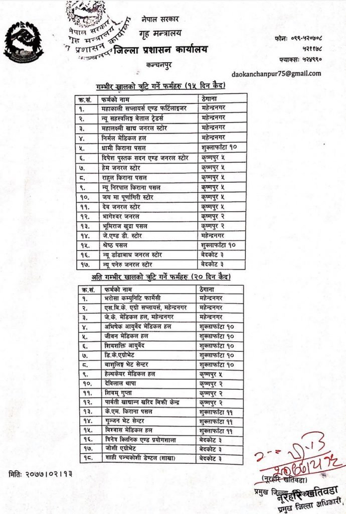 कञ्चनपुर –  जिल्ला प्रशासन कार्यालय कञ्चनपुरले ४८ जना ब्यापारीलाई कारवाहि गरेकोछ ।