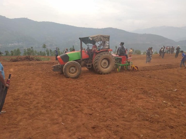 सिन्धुपाल्चोकमा मेसिनबाट पहिलो पटक मकै रोपियो