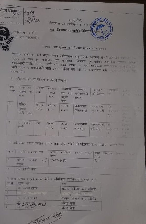 ठाकुर र यादवको अध्यक्ष रहने गरी आइतबार समाजवादी पार्टी नेपाल र राष्ट्रिय जनता पार्टी नेपालबीच एकता भई बनेको जनता समाजवादी निर्वाचन आयोगमा दर्ता भएको हो । जनता समाजवादी पार्टीको दर्ता नम्बर १३९२ भएको छ ।