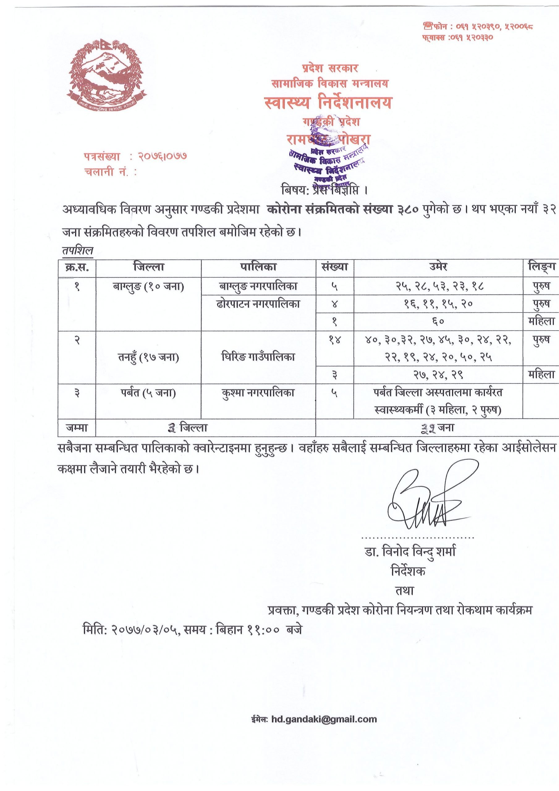 तनहुँको एउटै स्थानीय तहका १७ जना सहित गण्डकीमा ३२ जना कोरोना संक्रमित थपिए