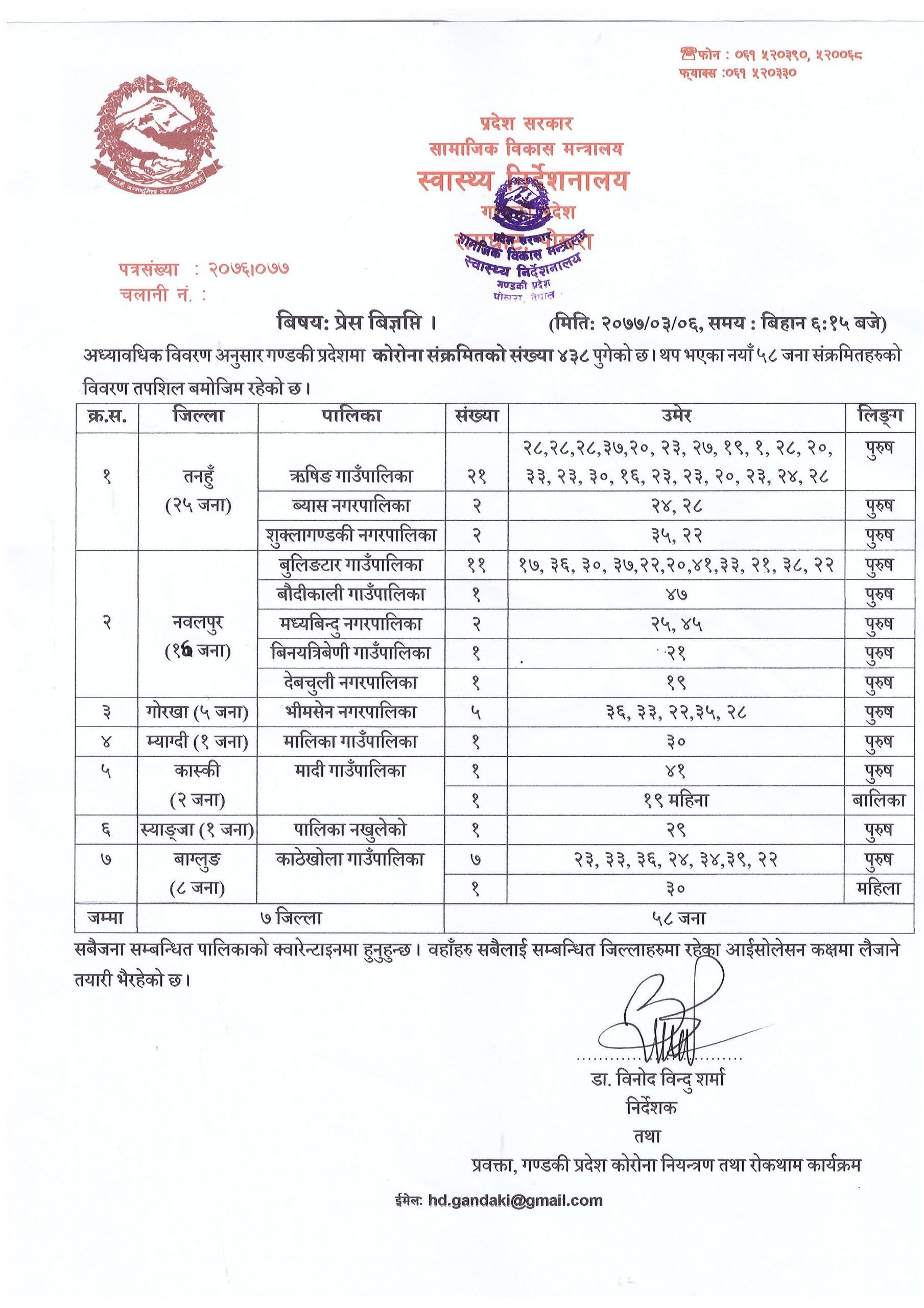गण्डकीमा थपिए ५८ जना कोरोना संक्रमित, कुल संख्या ४३८ पुग्यो, कहाँ कति थपिए ? (विज्ञप्ति सहित)