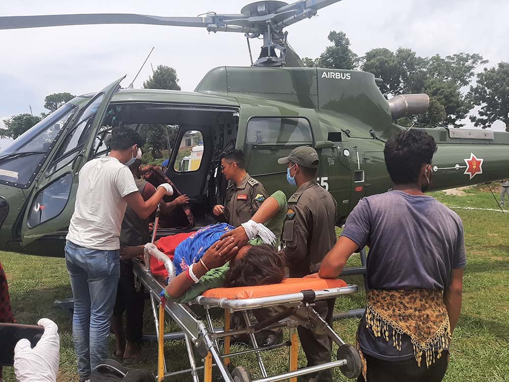 काठमाडौँ – नेपाली सेनाको हेलिकप्टर मार्फत अछाममा २१ वर्षीया गर्भवतीको उद्धार गरिएको छ । पंचदेवल विनायक नगरपालिका–७ की रमना विकलाई जिल्ला अस्पताल मंगलसेनबाट हेलिकप्टर मार्फत सुर्खेत पठाइएको जिल्ला अस्पतालका डाक्टर प्रेमप्रसाद ढुंगानाले बताए ।