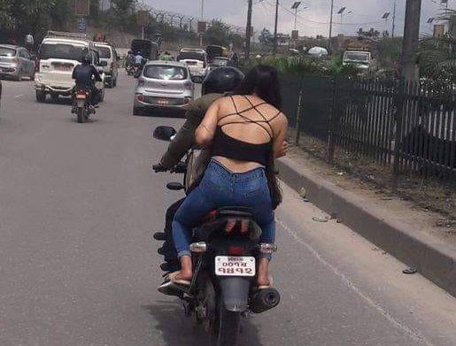 काठमाडौँका जडिबुटिमा सरकारी सवारी साधनमा अर्धनग्न अवस्थामा एक युवती माेटरसाइकलको पछाडी बसेको तस्बिर यतिबेला सामाजिक सञ्जालमा भाइरल भएको छ ।
