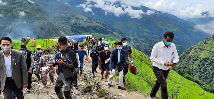 मुख्यमन्त्री पौडेलसहितको टोली हेलिकोप्टरमा राहत बोकेर लिदी प्रस्थान
