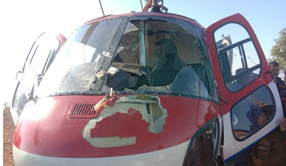 काठमाडौं – बागलुङबाट काठमाडौं आउँदै गरेको कैलाश हेलिकप्टर सर्भिसेज कम्पनीको एक हेलिकप्टर नुवाकोटमा आकस्मिक अवतरण गरेको छ । बागमती प्रदेशका प्रहरी प्रमुख बसन्त लामाले हेलिकप्टर चरासँग ठोक्किएपछि पाइलटले बेलकोटगढी नगरपालिका वडा नम्बर ६ स्थित झिल्टुङमा आकस्मिक अवतरण गरेको जानकारी दिए ।