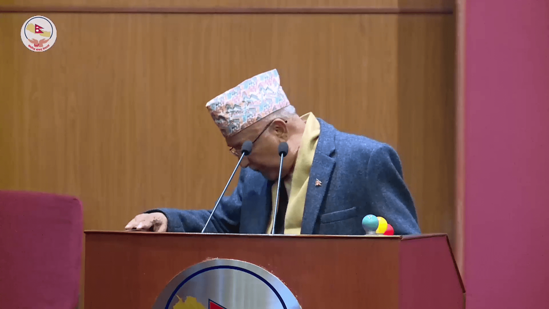काठमाडौँ – प्रधानमन्त्री केपी शर्मा ओलीले राष्ट्रिय सभामा बोल्ने क्रममा रोष्टममै थुक्नुभएको छ । आइतबार राष्ट्रिय सभामा सम्बोधनका क्रममा उहाँले रोष्टमको भूइँतिर फर्किएर थुक्नुभएको हो ।