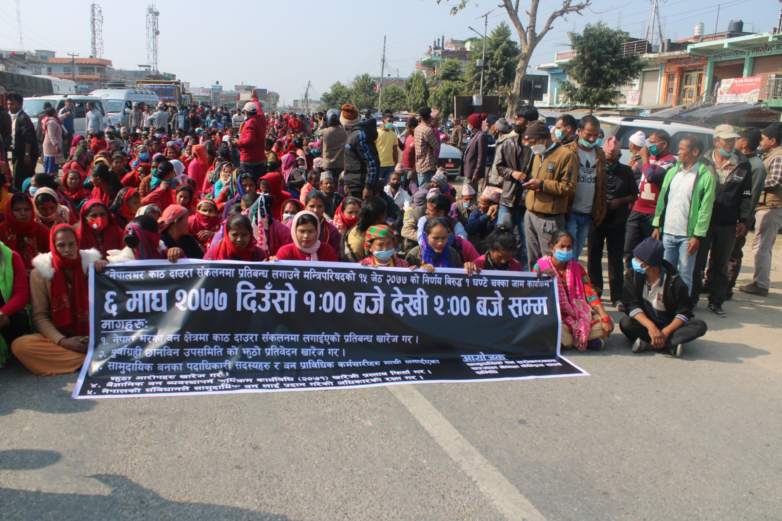 काठ दाउरा संकलनमा लगाइएको प्रतिबन्ध खारेजीको माग राख्दै कञ्चनपुरमा १ घण्टे चक्काजाम