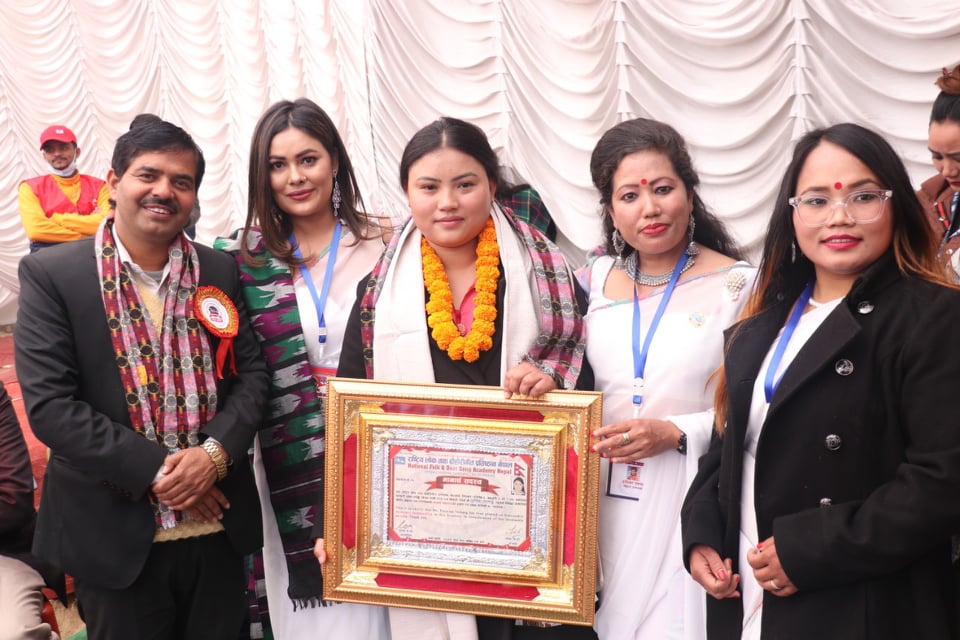 शुक्रबार प्रतिष्ठानको २०औँ वार्षिक साधारण सभाको अवसर पारी चर्चित गायिका तामाङलाई राष्ट्रिय लोक तथा दोहोरी गीत प्रतिष्ठान केन्द्रिय कार्यलय द्वारा मानार्थ सदस्यताका् प्रमाण सहित दोसाल्ला ओढाई सम्मानित गरिएको थियो । प्रतिष्ठान बाट सम्मानित भए पश्चात गायिका तामाङले अफुमाथी गीतसंगित क्षेत्रमा अग्रसर हुन थप उर्जा मिलेको र गितसंगित क्षेत्रमा निरन्तर अघि बढिरहने प्रतिबद्धता जनाइन् । कार्यक्रम्मा दोहरी प्रतिष्ठानका केन्द्रिय अध्यक्ष रमेस बि जी र वरिष्ठ गायिका तथा प्रतिष्ठानका वरिष्ठ उपाध्यक्ष रिता थापा लगायत प्रतिष्ठानका भुतपुर्व अध्यक्ष हरु र थुप्रै कलाकार हरुको बाकलो उपस्थिती रहेको थियो ।