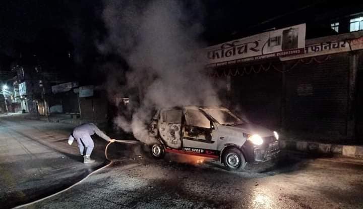 प्रचण्ड– नेपाल समुहका कार्यकर्ताहरुले गरे ट्याक्सीमा आगजनी