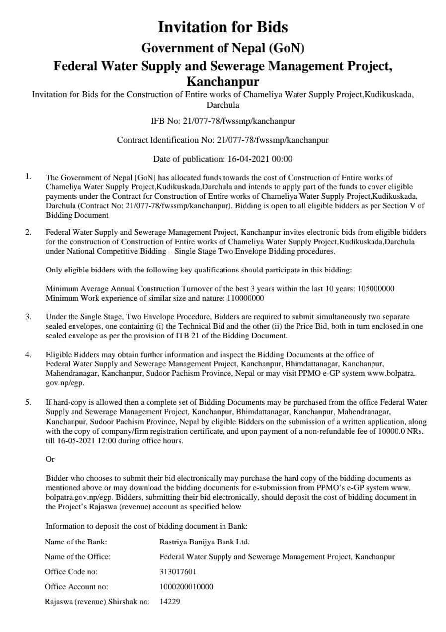 यसैकुरालाई मध्यनजर गर्दै कुणी, कुसकाँडा क्षेत्रमा बृहत खानेपानी आयोजना सञ्चालनका लागि बोलपत्र आह्वान गरिएको छ ।