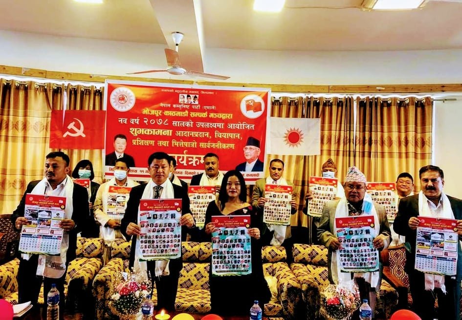 काठमाडौं – नेकपा (एमाले) भोजपुर काठमाडौं सम्पर्क मञ्चको भित्तेपात्रो सार्वजनिक भएको छ । नयाँ वर्ष २०७८ सालको अवसर पारेर काठमाडौंको कमलादीमा आयोजित विशेष कार्यक्रममा प्रदेश नं १ का मुख्यमन्त्री शेरधन राईले भित्तेपात्रो सार्वजनिक गर्नुभएको हो ।