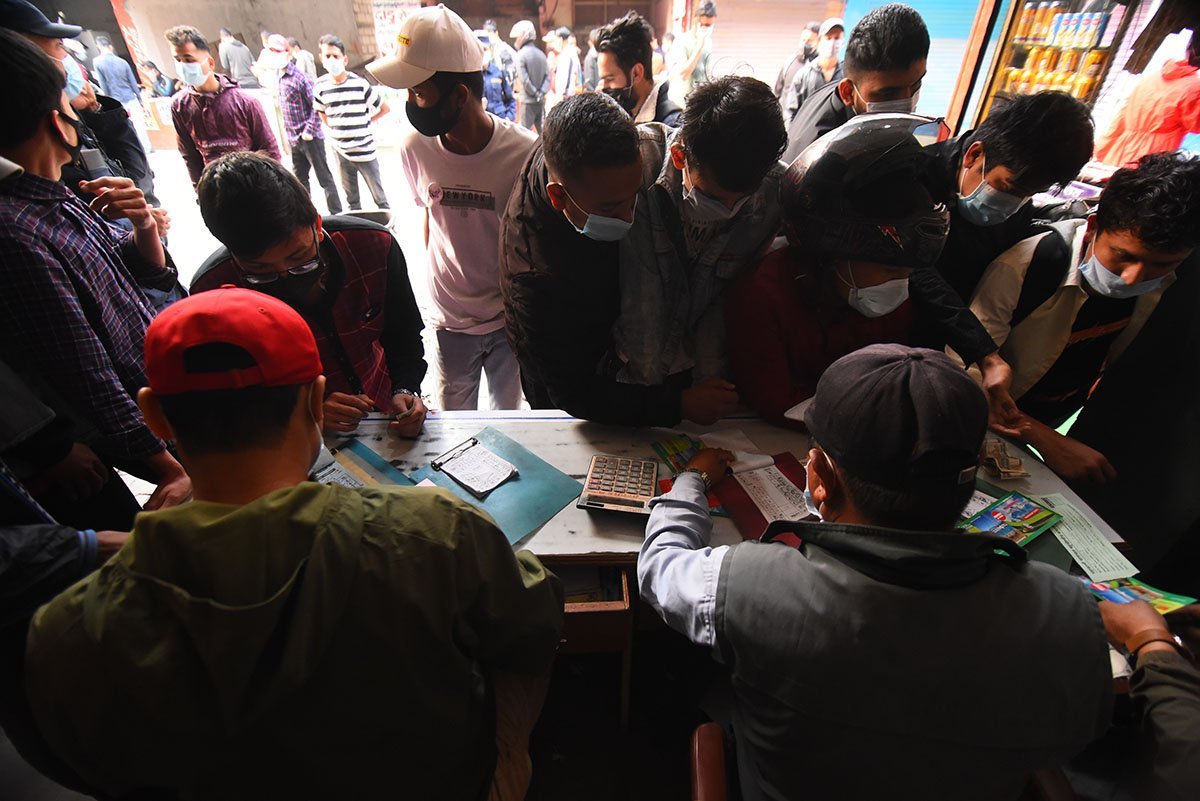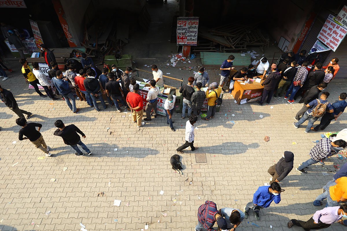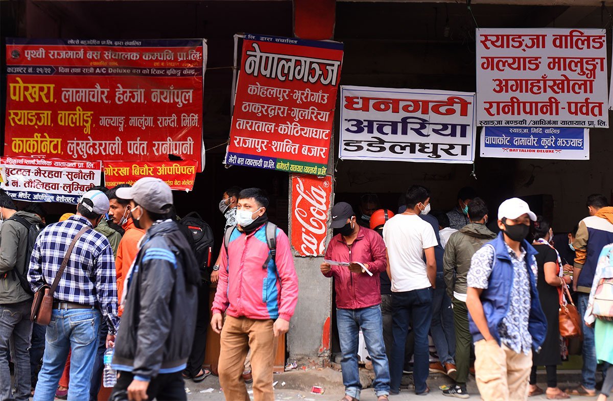 काठमाडौँ, वैशाख १४ गते । गोङ्गबुस्थित नयाँ बसपार्कमा घर जाने यात्रुको भीडभाड बढेको छ । जिल्ला प्रशासन कार्यालय काठमाडौँ, भक्तपुर र ललितपुरका प्रमुख जिल्ला अधिकारीको सोमबार बसेको संयुक्त बैठकले वैशाख १६ गते बिहानदेखि काठमाडौँ उपत्यकामा एक हप्ता निषेधाज्ञा लगाउने निर्णय गरेसँगै घर जाने यात्रुको सङ्ख्यामा वृद्धि भएको हो ।