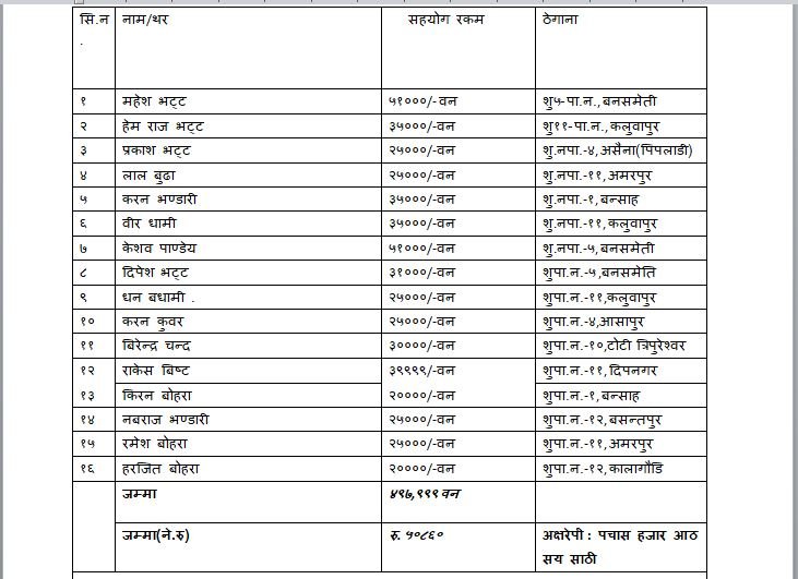 संकलन गरिएको रकमको विवरण यसप्रकार छ :-