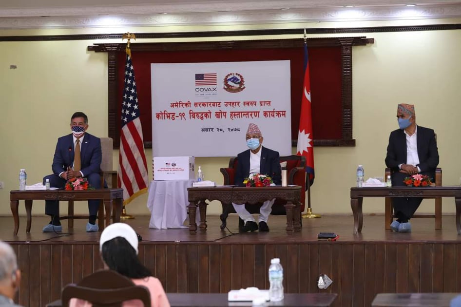सोमबार नै प्रधानमन्त्री निवास बालुवाटारमा भएको कार्यक्रममा प्रधानमन्त्री केपी शर्मा ओलीले खोप अनुदान उपलब्ध गराएकोमा अमेरिकी सरकारलाई धन्यवाद दिनुभयो । स्वास्थ्य मन्त्री श्रेष्ठले अमेरिका सरकारले नेपाललाई दिएको खोप नेपाली जनताको जीवन रक्षाका लागि बरदानस्वरुप हुने बताउनुभयो ।