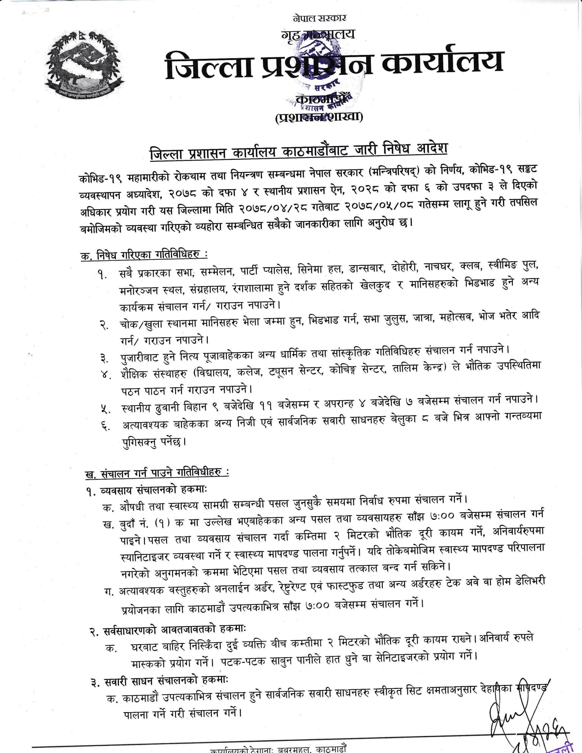 काठमाडौं, ललितपुर र भक्तपुरका प्रमुख जिल्ला अधिकारीहरूबीच मंगलबार भएको संयुक्त बैठकपछि जारी आदेशअनुसार यी निर्णय गरेको छ ।