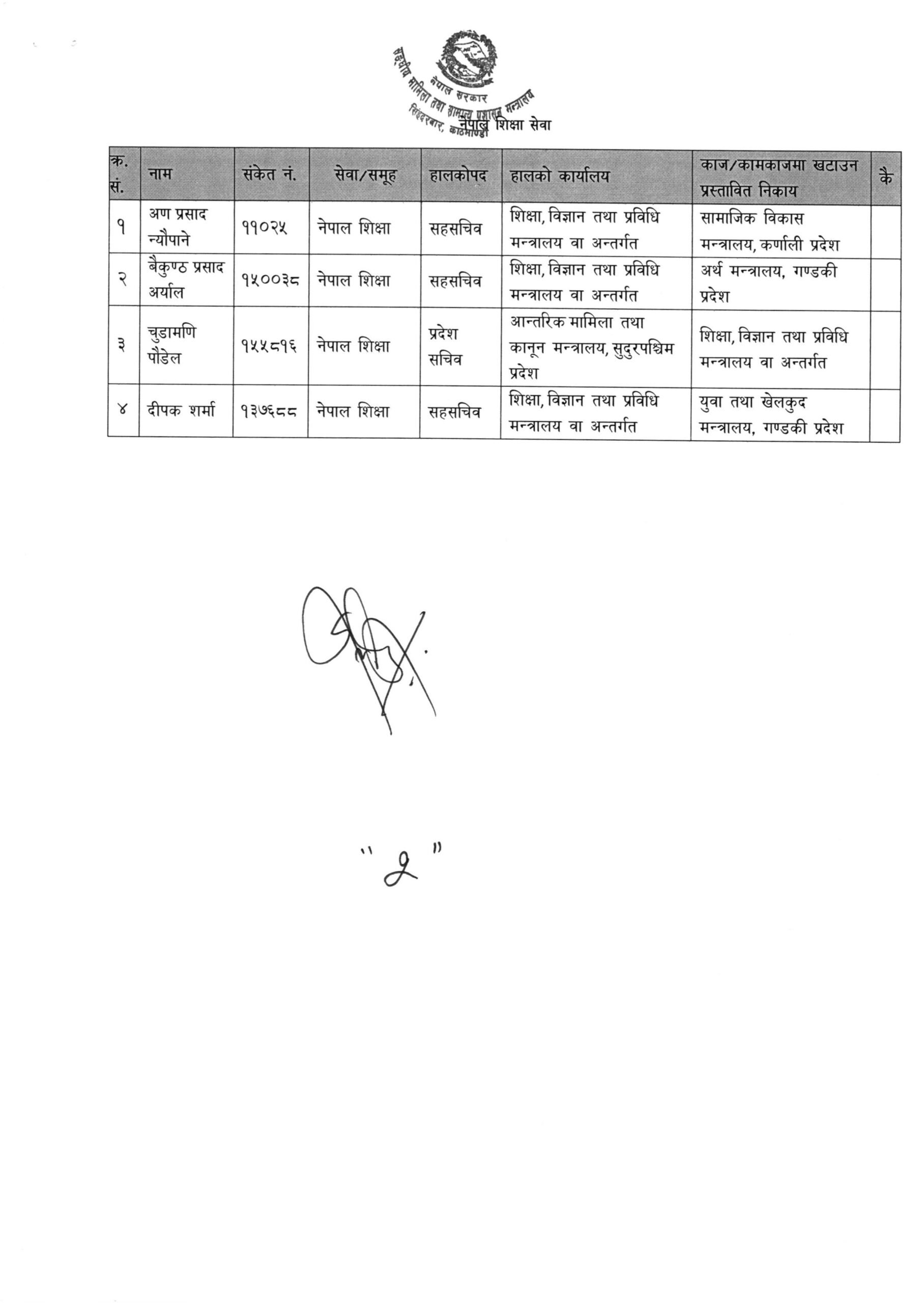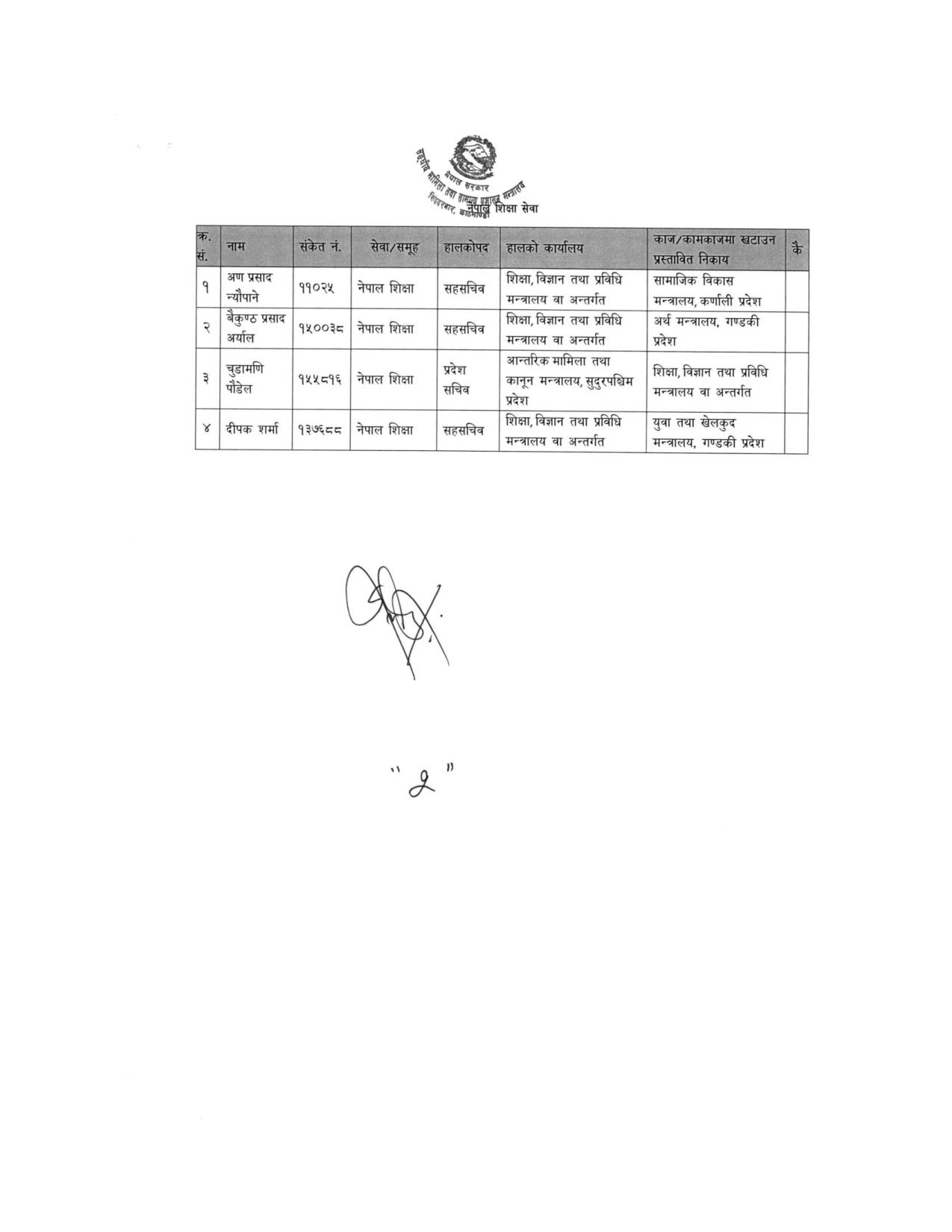 प्रदेश मन्त्रालयमा वरिष्ठ सहसचिवलाई पठाउने प्रचलन भए पनि चार जना वरिष्ठ सहसचिव भने प्रदेशमा पठाइएनन् ।