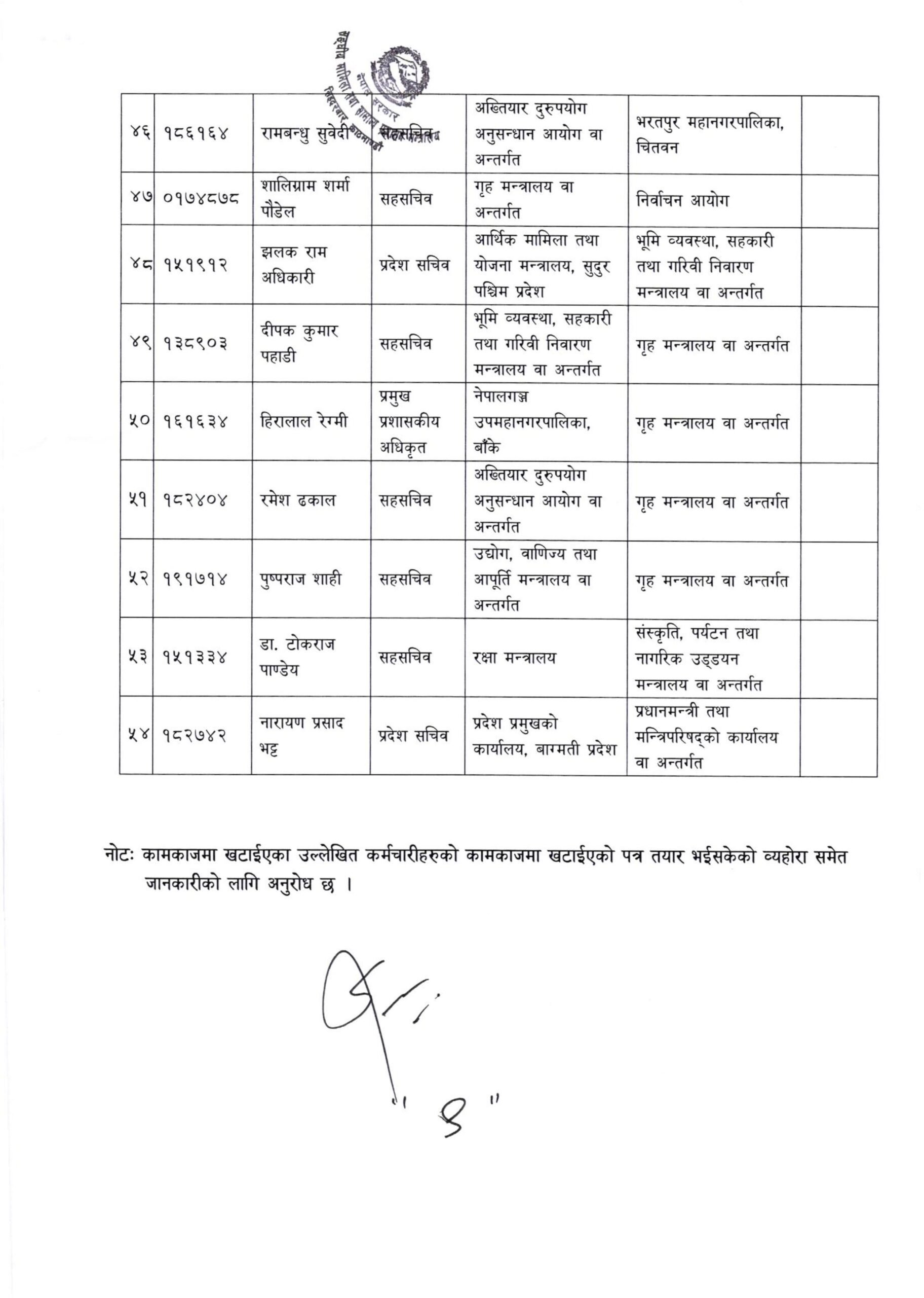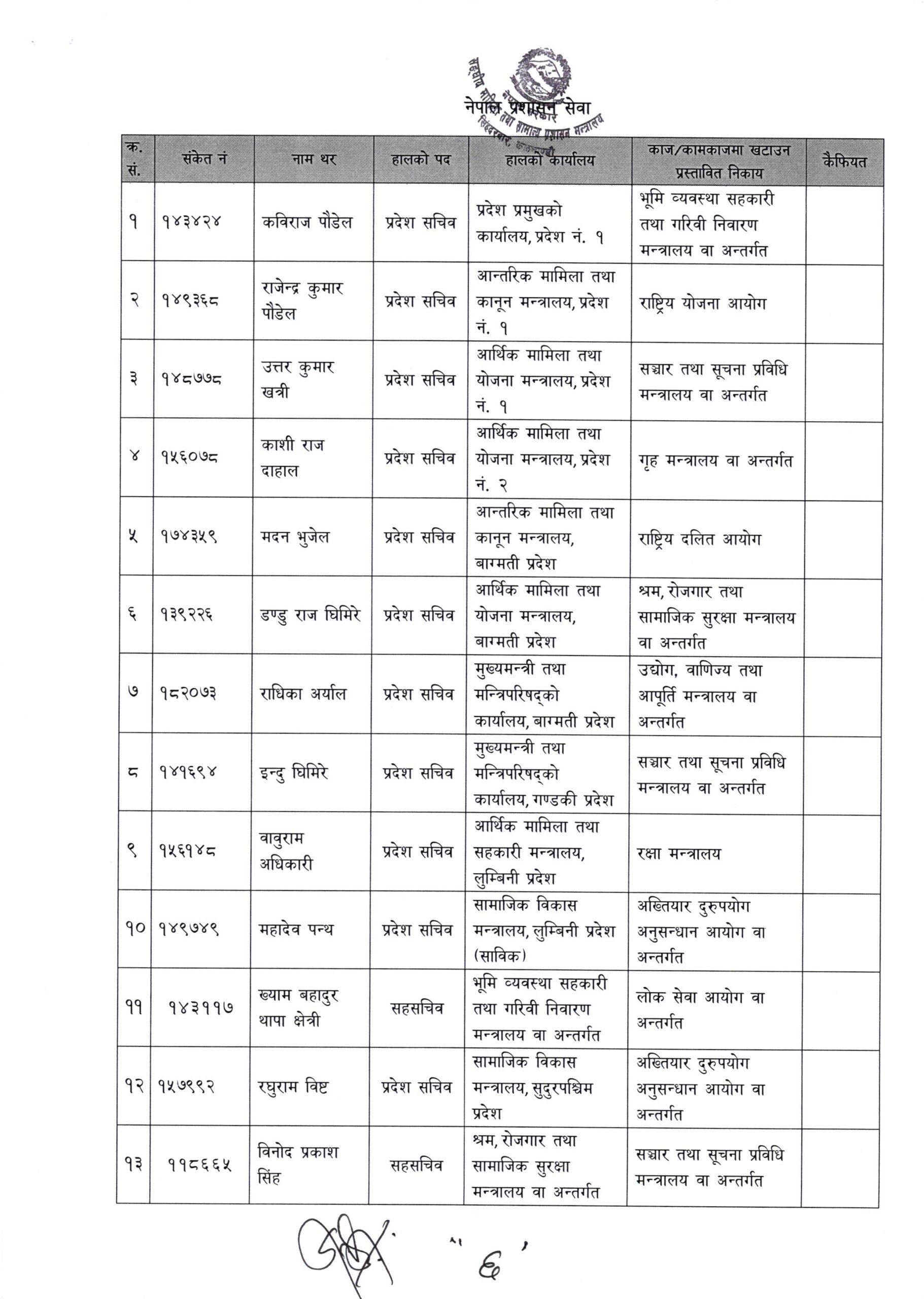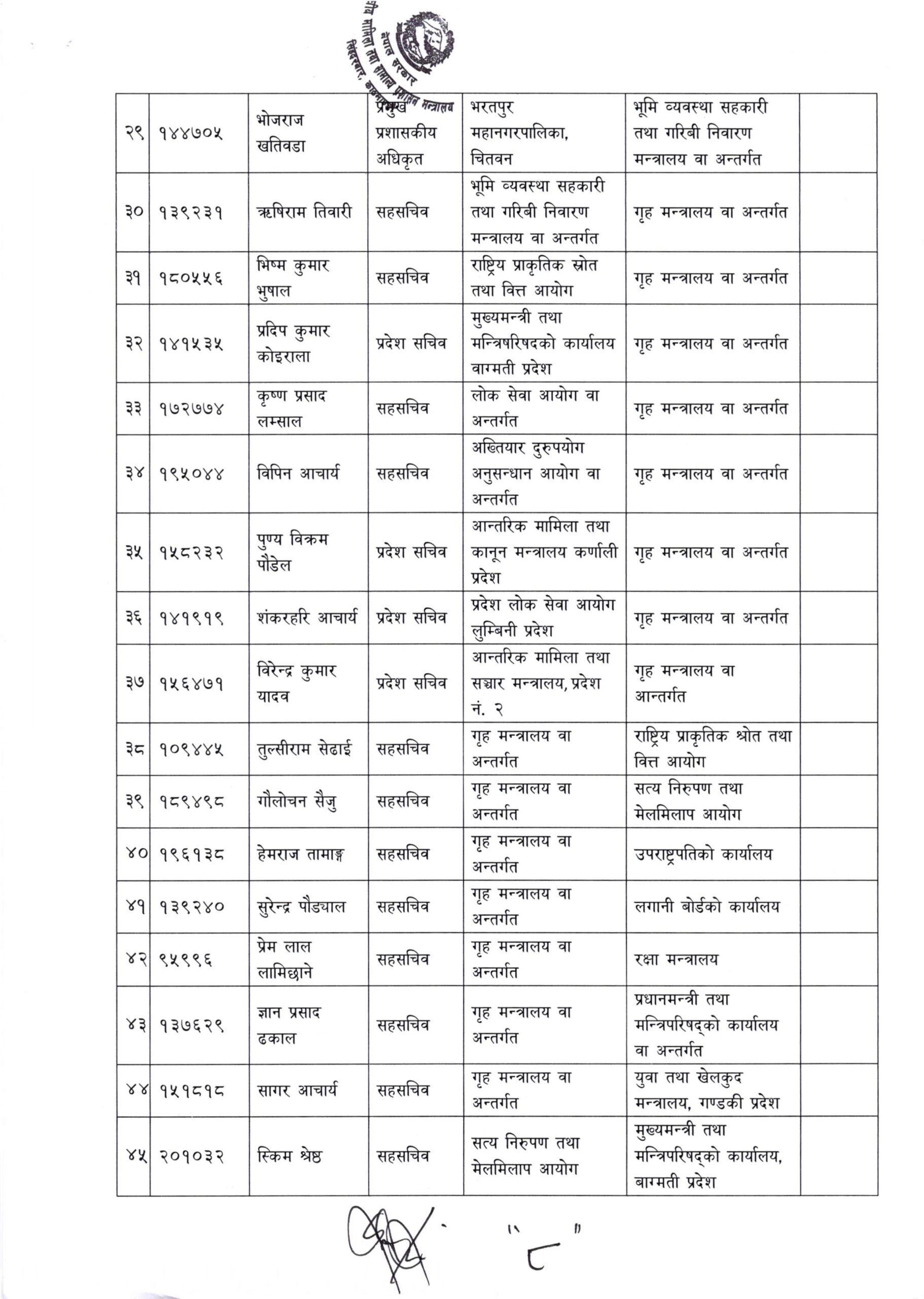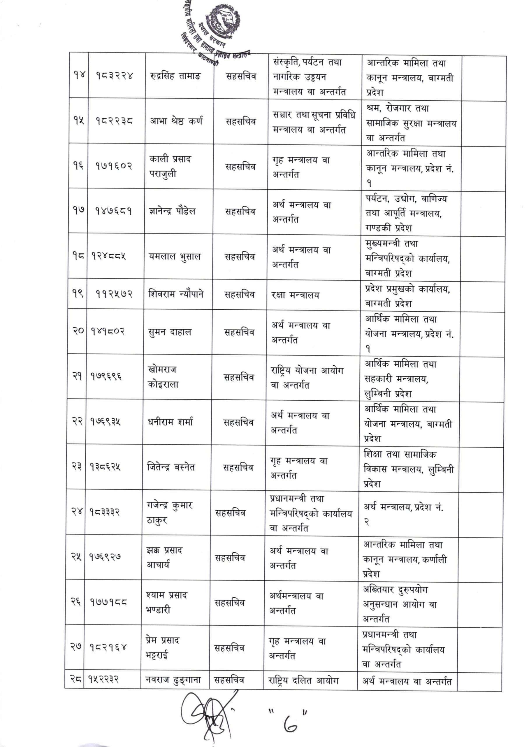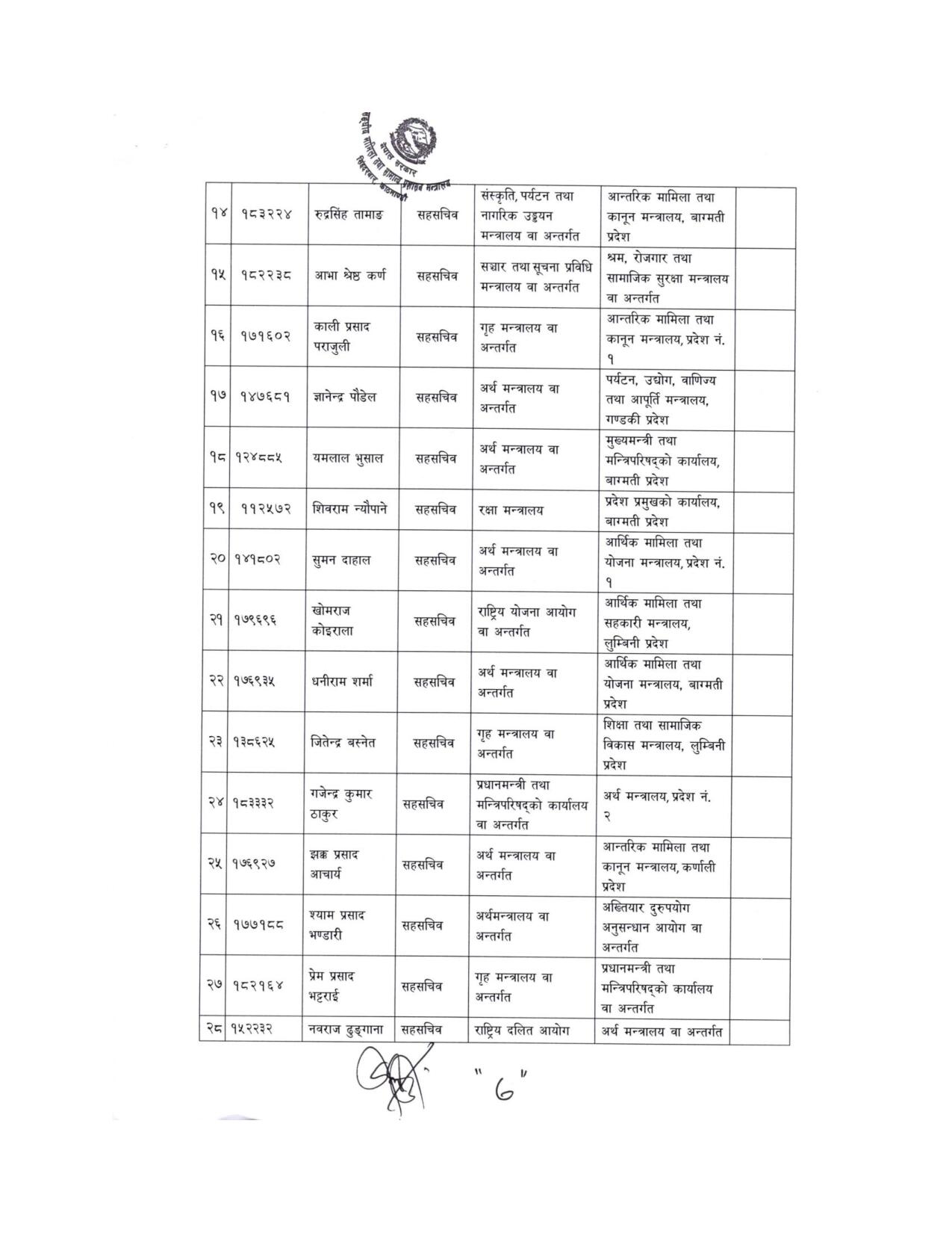 काठमाडौं – सरकारले विभिन्न सेवा समूहका ८५ जना सहसचिवको सरुवा गरेको छ । सरुवा गरिएका धेरै सहसचिवलाई प्रदेशका विभिन्न मन्त्रालयको सचिवको जिम्मेवारी दिइएको छ ।