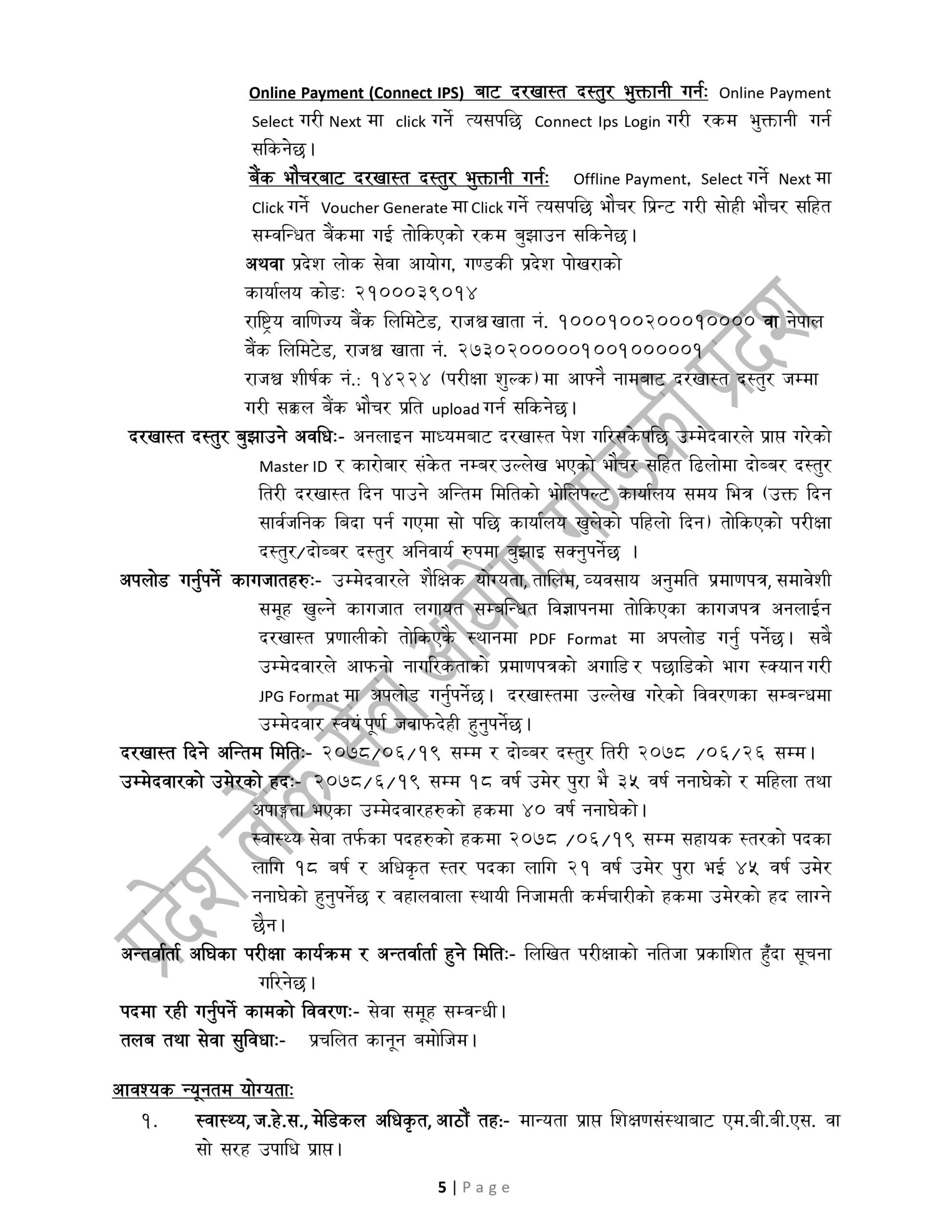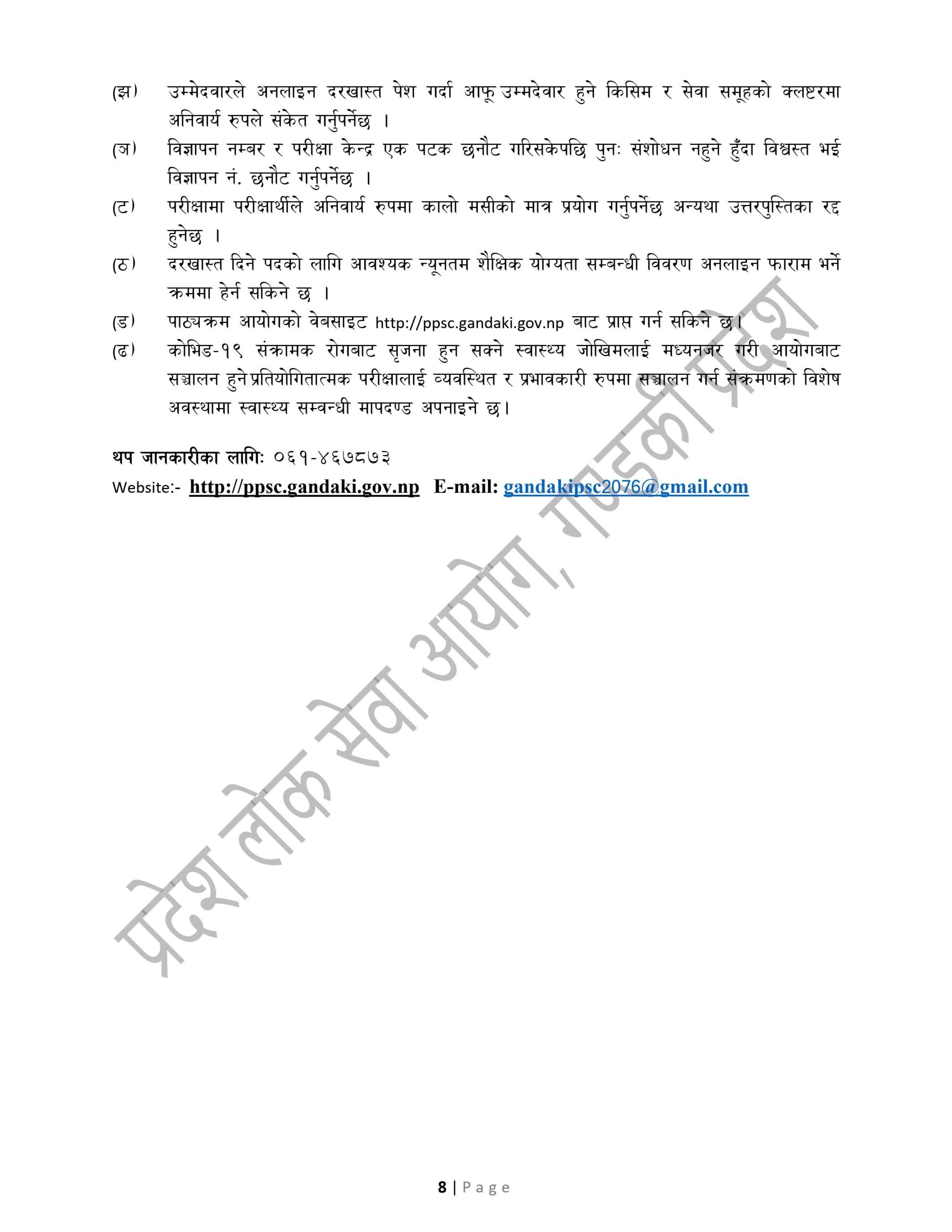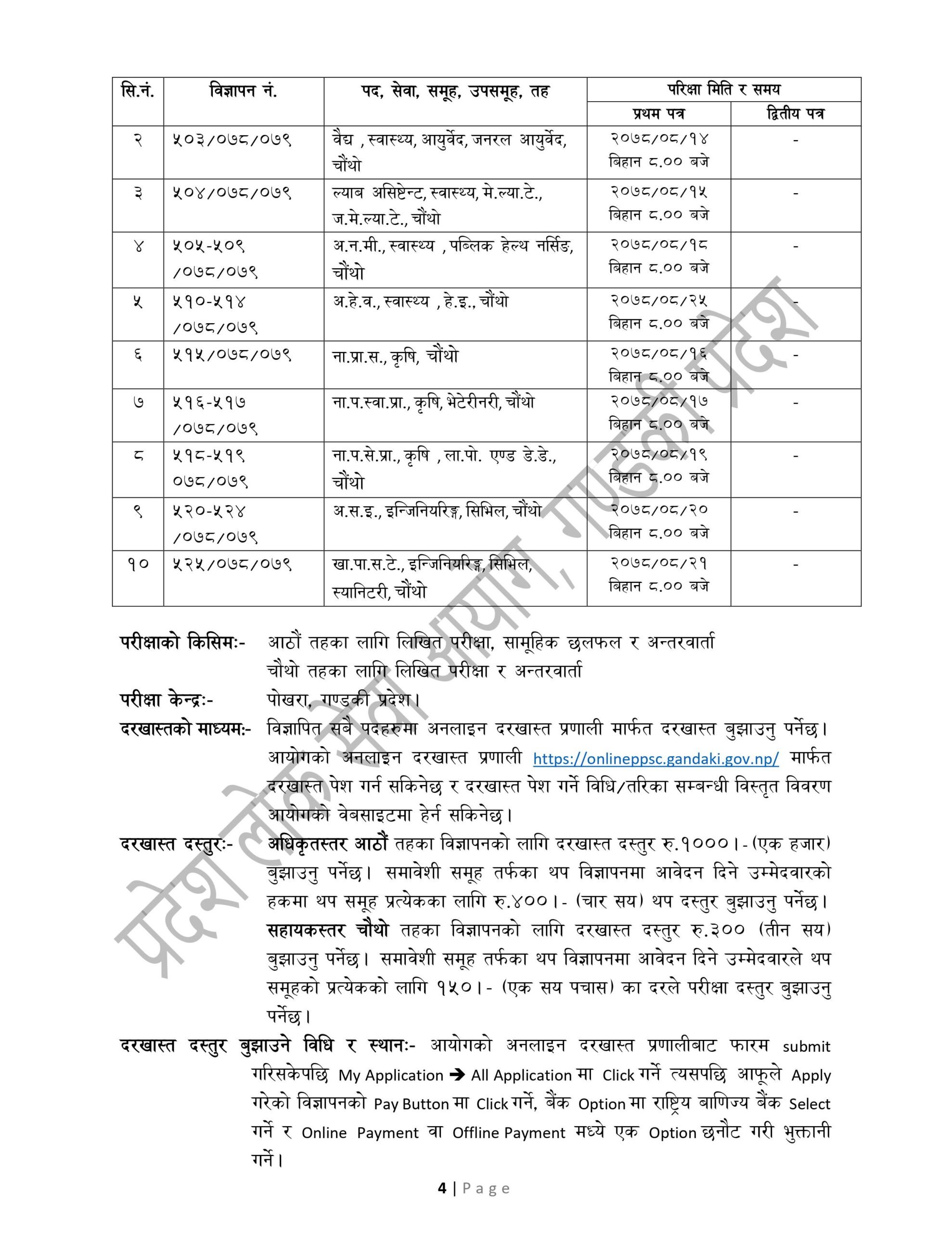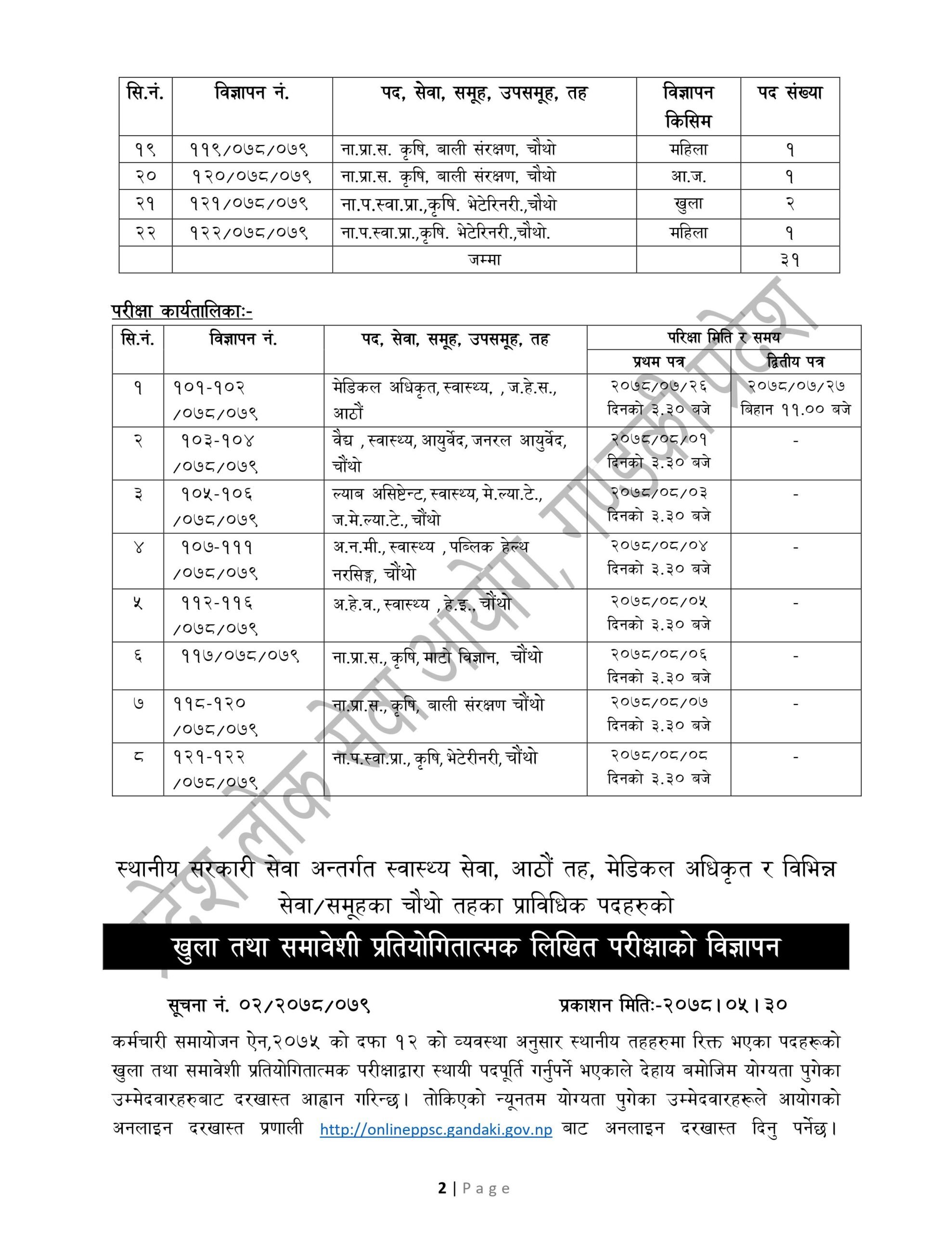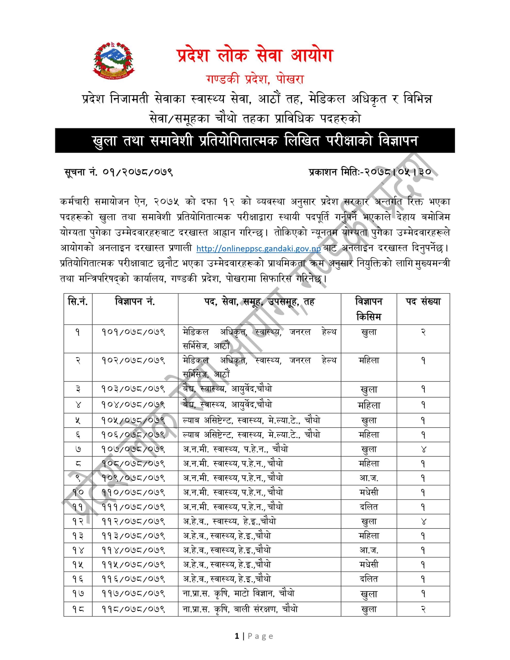 काठमाडौँ – प्रदेश लोकसेवा आयोग, गण्डकीले विभिन्न पदका लागि आवेदन खुला गरेको छ । बुधबार आयोगले सूचना जारी गर्दै विभिन्न पदका लागि आवेदन माग गरेको हो । प्रदेश निजामती सेवा र स्थानीय सरकारी सेवा अन्गरतगका विभिन्न प्राविधिक पदहरुमा आयोगले विज्ञापन खोलेको हो ।