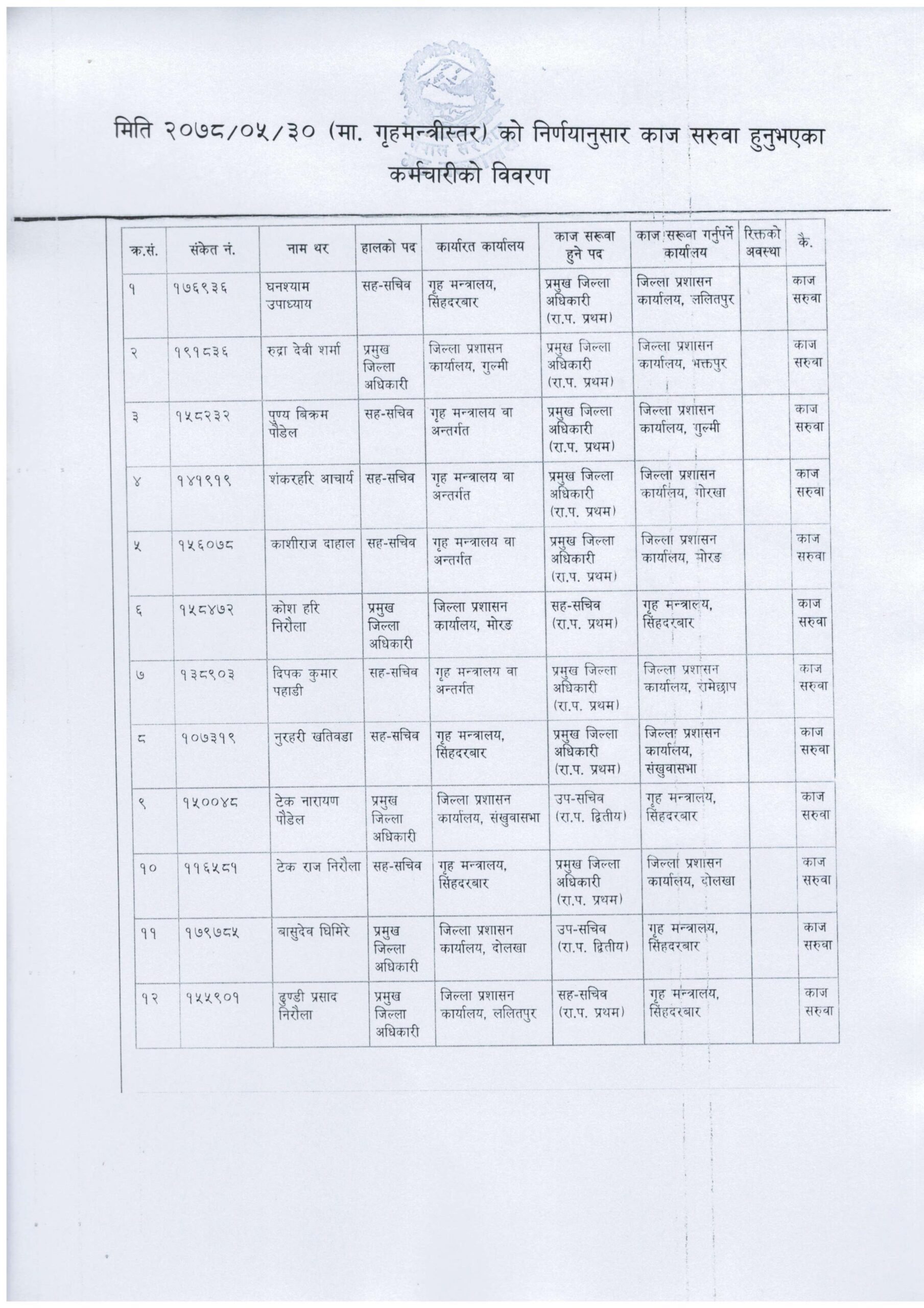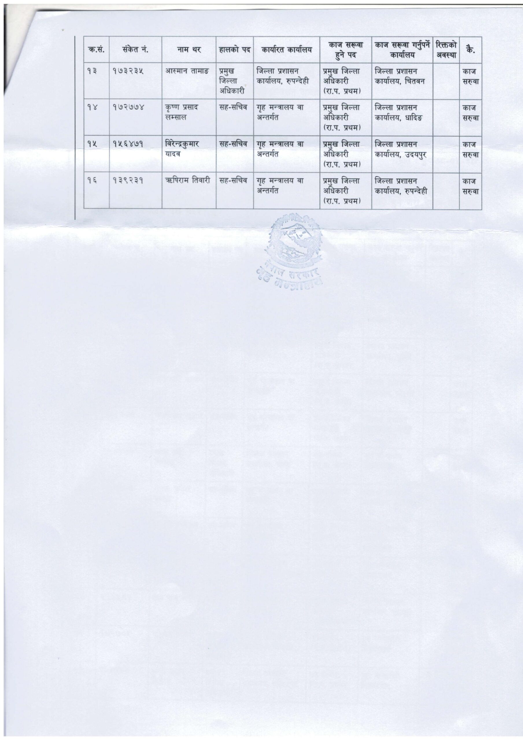 गृहमन्त्रीस्तरको निर्णयअनुसार बुधबार १६ जनाको काज सरूवा गरेको मन्त्रालयले जनाएको छ ।