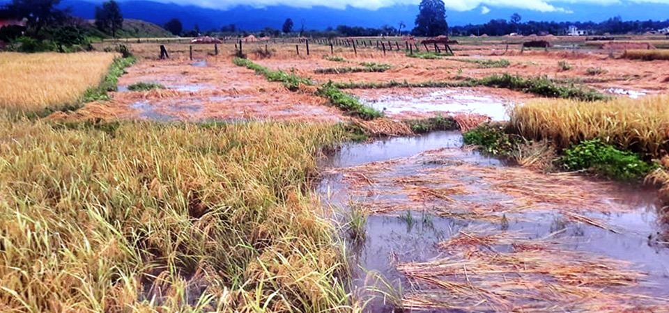 खेतमा पाकी सकेको धान कतिले काटेर पसी (धान काटेर खेतमै सुकाउन फैलाएर राखिने काम) सुकाएका थिए । कति अब एक÷दुई दिनभित्रै धान काट्ने तयारी गर्दै थिए । अचानक परेको पानीले पसी डुबाएको र बोटकै धान पनि सोत्तर बनाएर लडाएको भङ्गाहा नगरपालिका–४ रामनगरका ७५ वर्षीय किसान इस्लाम राइनले गहँभरि आँशु काढ्दै बताउनुभयो । “हामी पर्व मनाउने तयारीमा थियौँ”, राइनले भन्नुभयो । धर्तीमा पाप बढेसँगै प्राकृतिक विपद् बढेको राइनको विश्वास छ ।
