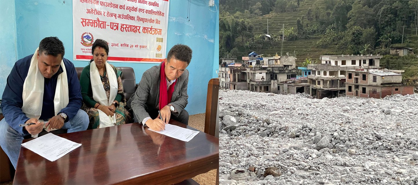 मेलम्ची तथा इन्द्रावती नदीमा गत असार १ गते र त्यसपछि आएको विनासकारी बाढीबाट सबैभन्दा बढी प्रभावित हेलम्बु गाउँपालिकामा १० वटा घर निर्माण गर्न हिमालयन फाउडेसन र हेलम्बु गाउँपालिकाबिच सहमति भएको हो । काठमाडौँ महानगरपालिकाका उप–प्रमुख हरिप्रभा खड्काको प्रमुख आतिथ्यतामा भएको कार्यक्रममा फाउण्डेसनका अध्यक्ष यज्ञराल श्रेष्ठ र हेलम्बु गाउँपालिकाका अध्यक्ष निमा ग्याल्जेन शेर्पा बीच लिखित रुपमा सम्झौता भएको हो ।